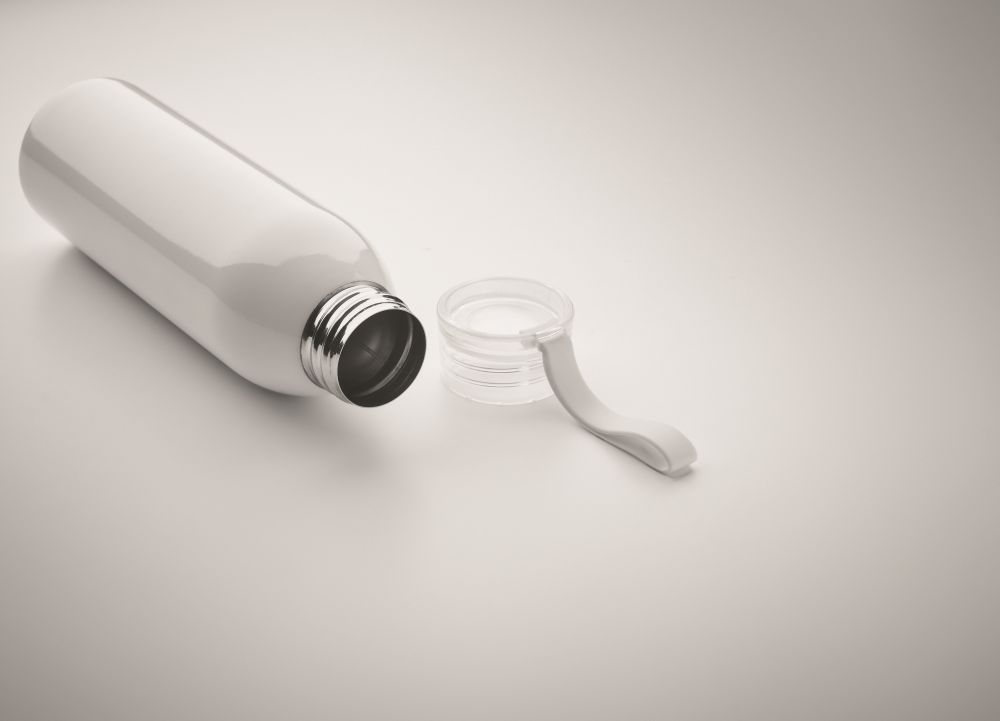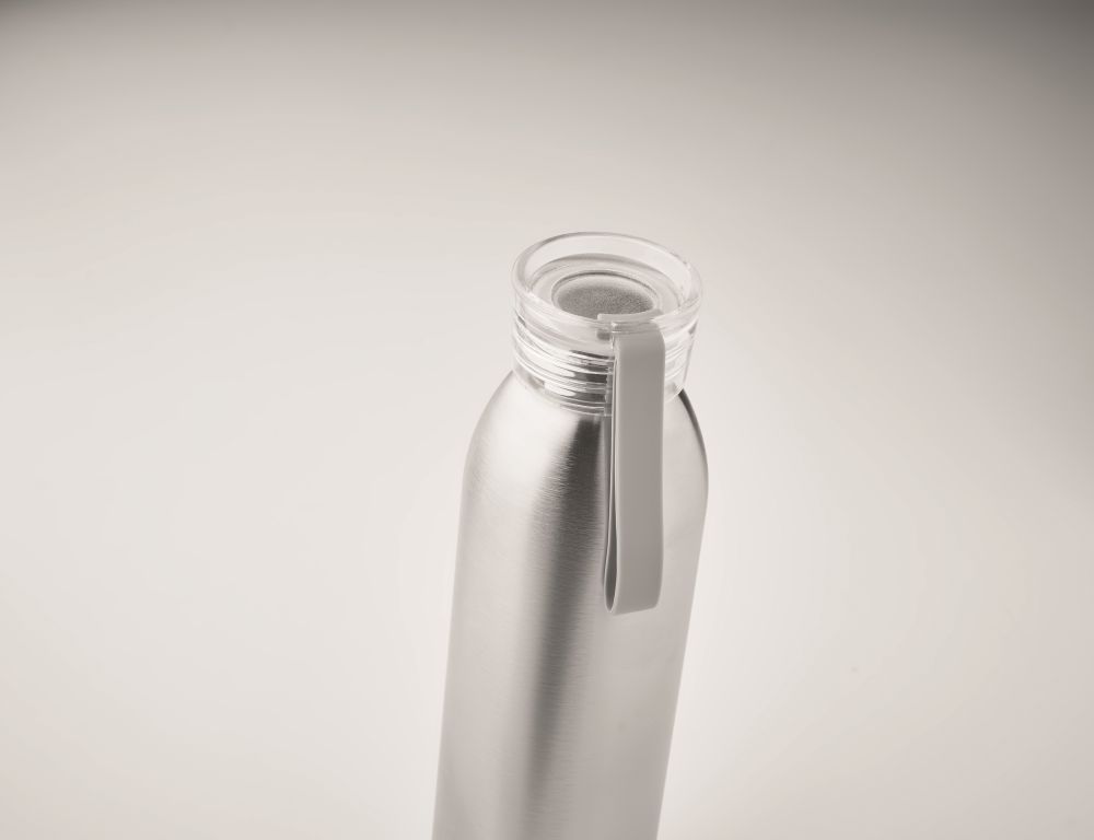 Single wall stainless steel bottle with PP lid and silicone hanger. Capacity: 650 ml.