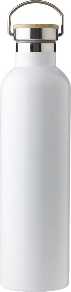 Stainless steel bottle (1 L), double walled with carrying lid and bamboo detail. Hot drinks stay warm for up to 12 hours, cold drinks stay cold for up to 18 hours.