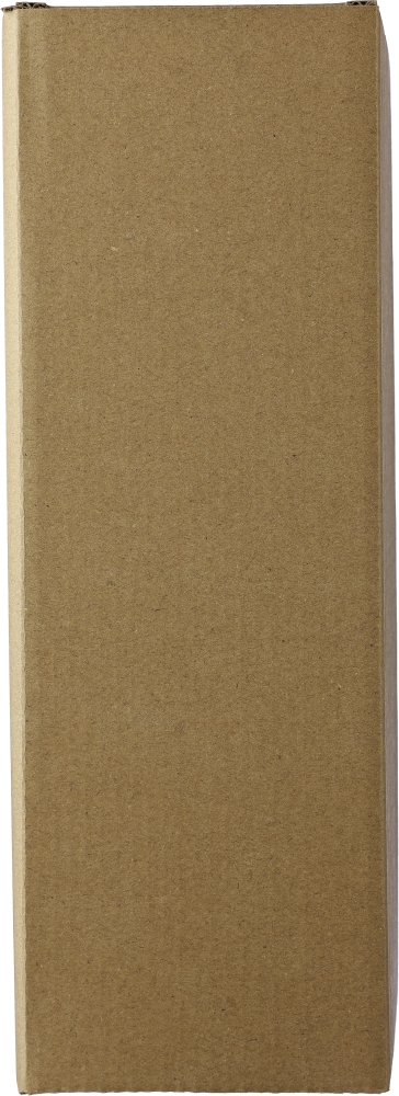 Stainless steel double-walled drinking bottle (1000 ml). Features a PP lid with a screw dispenser and carrying loop. The bottom includes a small screw-on compartment for storage. The interior is made of stainless steel 304, and the exterior is stainless steel 201. Individually packaged in a brown cardboard box. Dimensions: 9 x 28,4 cm