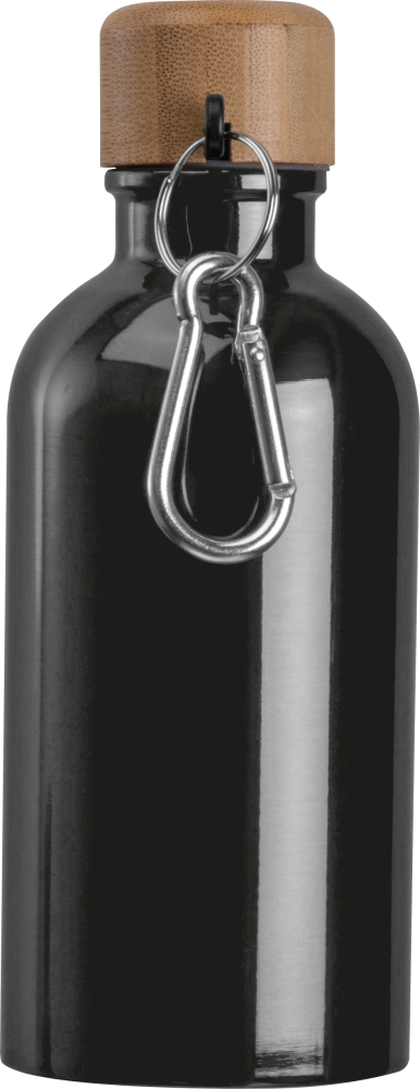 Stainless steel drinking bottle with carabiner, 400ml, black