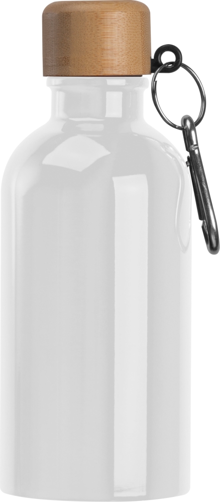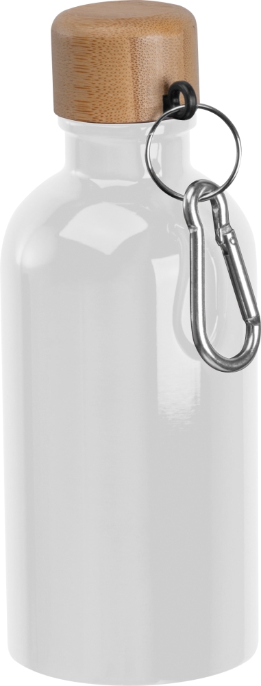 Stainless steel drinking bottle with carabiner, 400ml, white