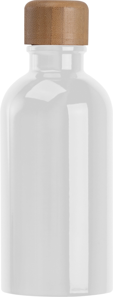 Small stainless steel drinking bottle with practical carabiner, a capacity of 400ml and a leak-proof screw cap with bamboo lid. We engrave your logo on the bottle Dimensions: o 6,5 x 17 cm