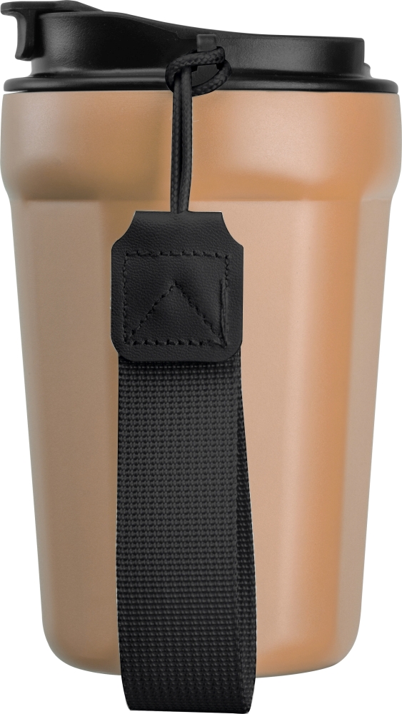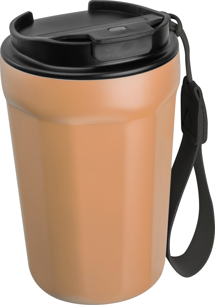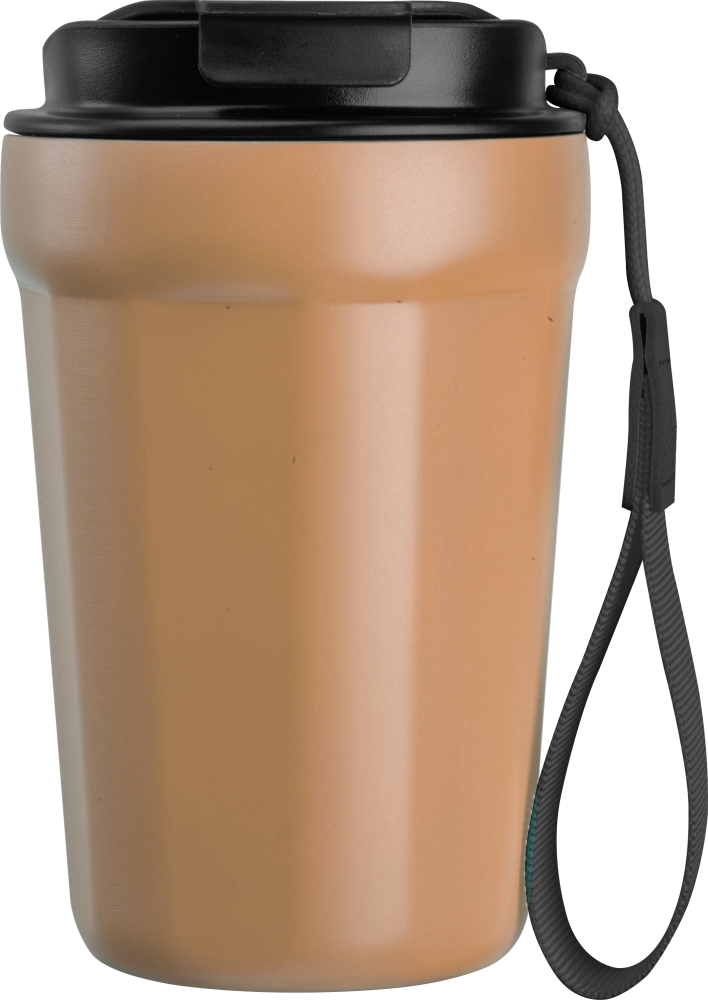 Elegant double-walled vacuum drinking cup made of stainless steel - perfect for travelling. With a capacity of 350ml and a leak-proof lid. We will engrave your logo on the mug. Dimensions: