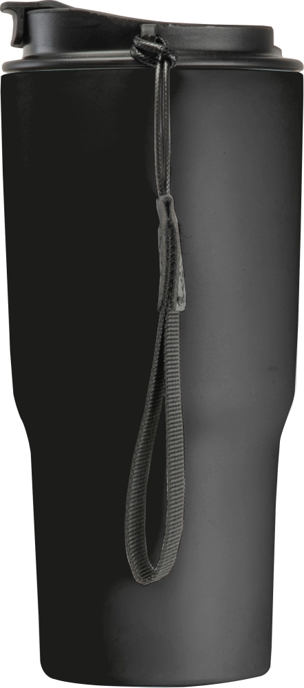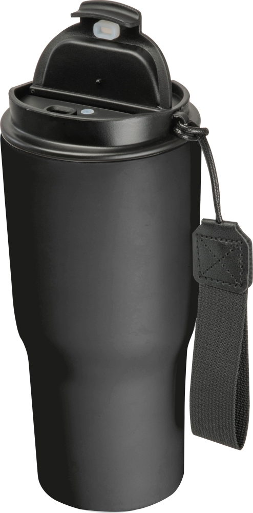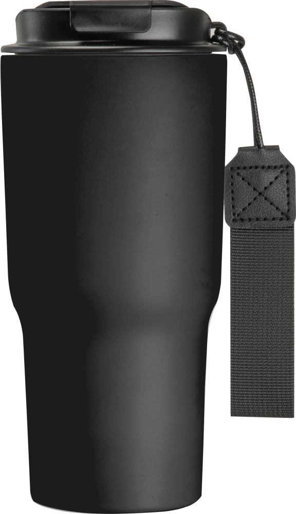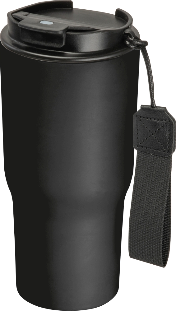 Elegant double-walled vacuum drinking cup made of stainless steel with a capacity of 550ml, a leak-proof screw cap and drinking opening as well as a practical carrying strap. We will engrave your logo on the mug. Dimensions: o 8,5 x 19,5 cm