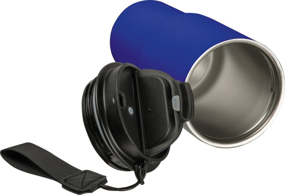 Elegant double-walled vacuum drinking cup made of stainless steel with a capacity of 550ml, a leak-proof screw cap and drinking opening as well as a practical carrying strap. We will engrave your logo on the mug. Dimensions: o 8,5 x 19,5 cm