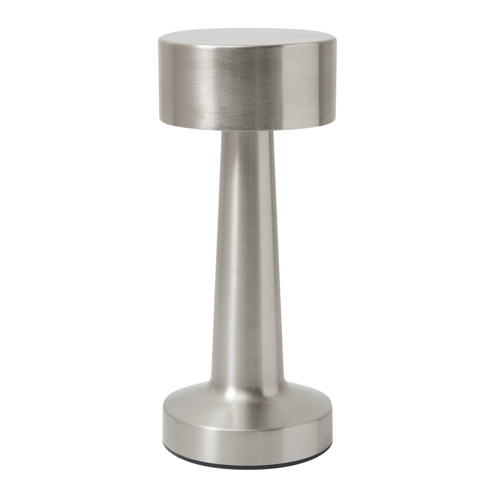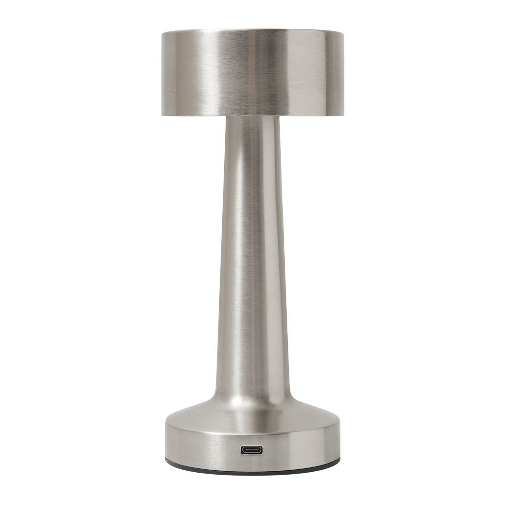 Stainless steel table lam: 3 light modes (warm, white, and warm white light), touch sensitive on/off switch and light mode selection, incl. USB charging cable with USB Type-C connector (length approx. 100 cm), on/off button on the bottom, versatile in use due to integrated 800 mAh lithium battery, 4 non-slip feet on the bottom, in a box. Dimensions: O9 x 21,5 cm