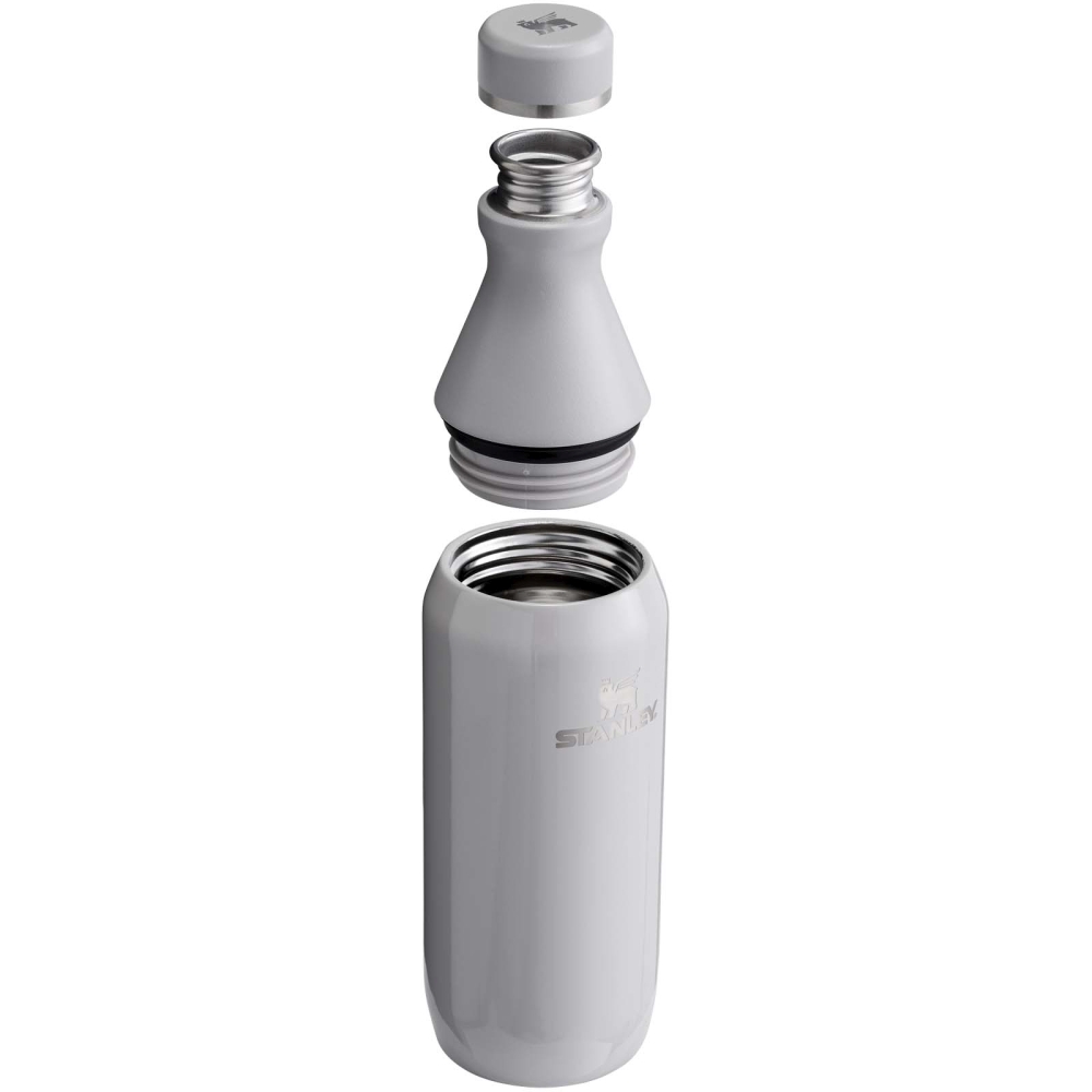 The Stanley 350 ml All Day Slim water bottle is designed for all-day hydration, combining convenience and performance. Made from 90% recycled stainless steel, it features a two-piece opening—one for easy sipping and the other for adding ice and hassle-free cleaning. The neck is crafted from single-wall stainless steel with a plastic threaded collar and a secure compressed seal to prevent leaks. The body has double-wall vacuum insulation, ensuring your drinks stay at the perfect temperature for hours. Durable and thoughtfully designed, its the ideal bottle for staying refreshed wherever your day takes you. Dimensions: 6,55 x 21,9 x 6,55 cm