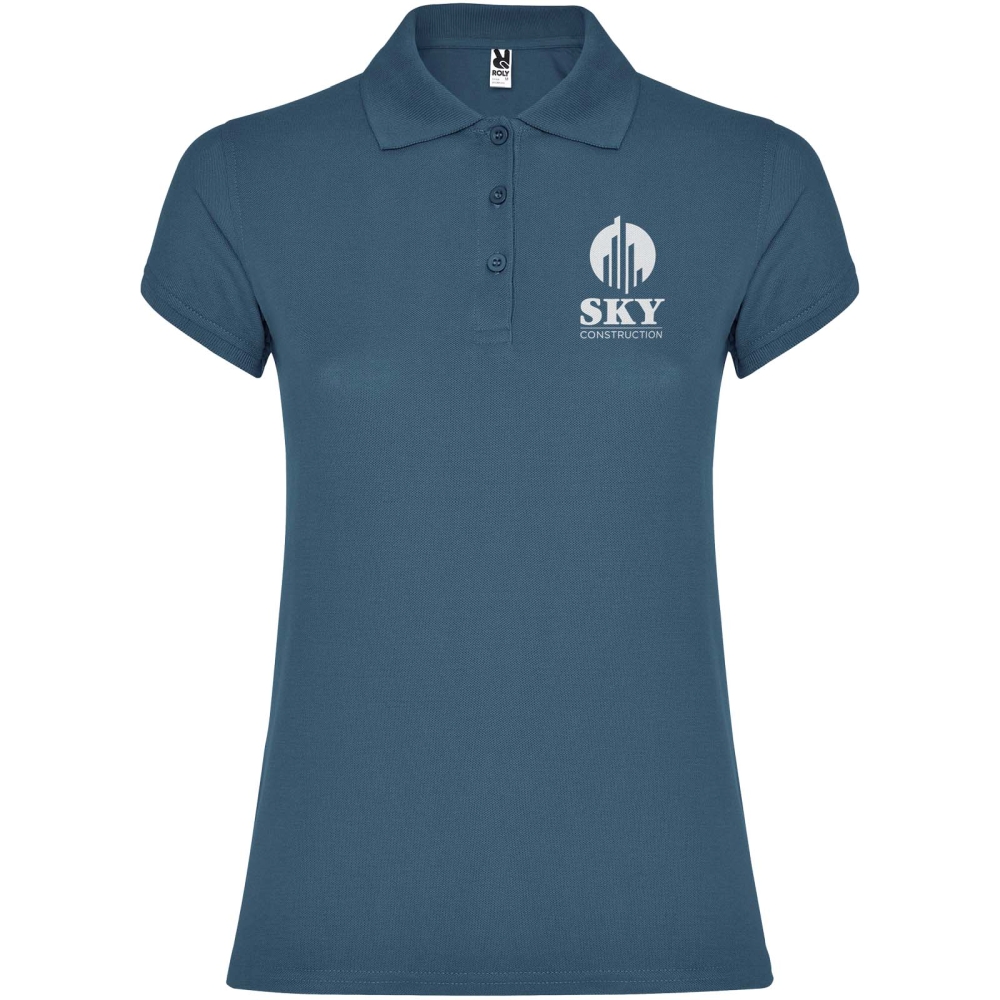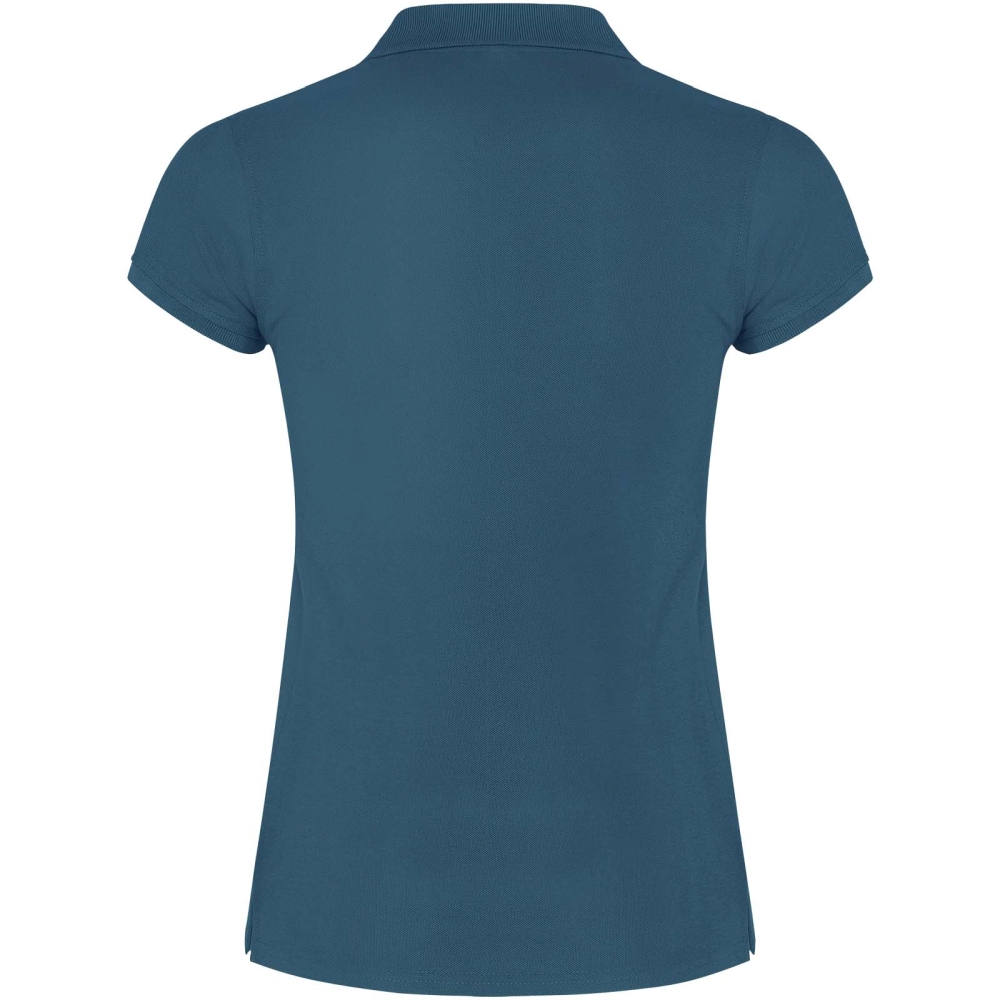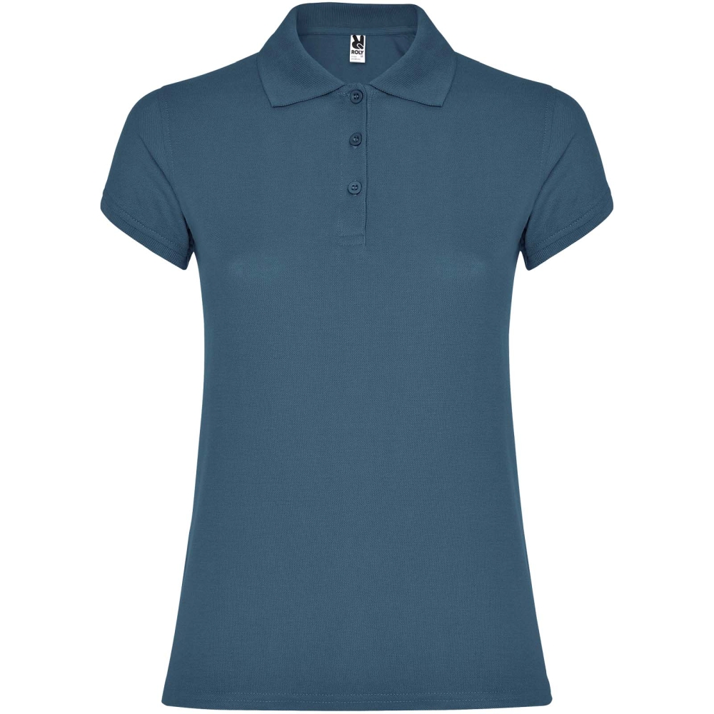 Short-sleeve polo shirt for women. Reinforced covered seams in interior collar. 1x1 ribbed collar and cuffs. Side seams and fitted cut. Narrow 3-button placket. Side slits. Removable label. The model is 179 cm and is wearing size S.