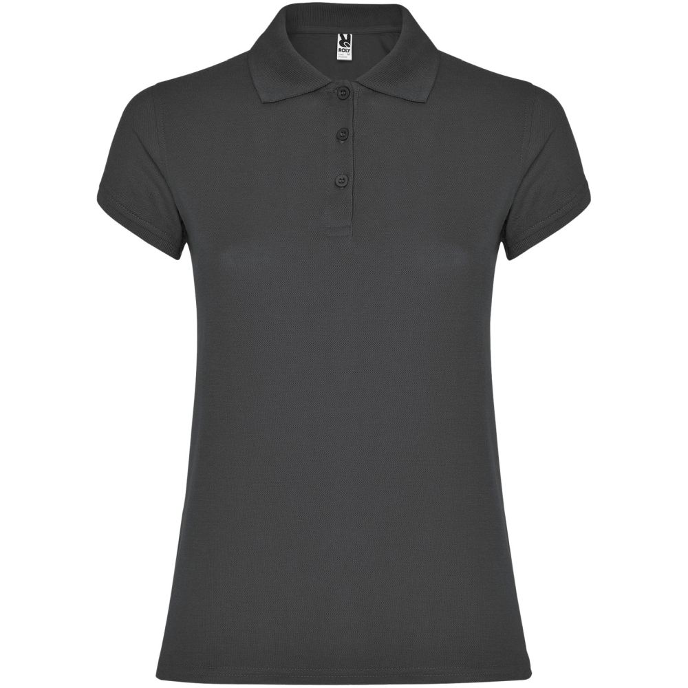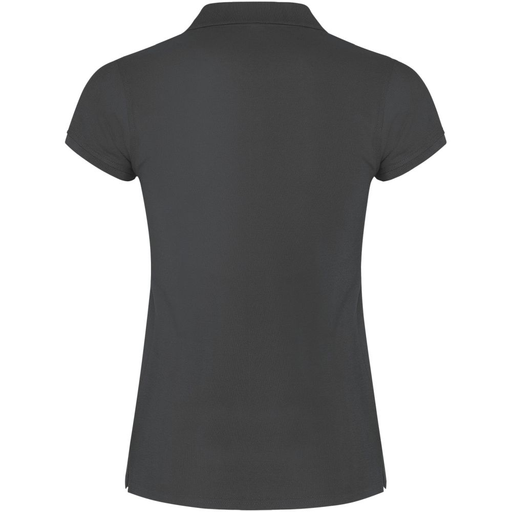 Short-sleeve polo shirt for women. Reinforced covered seams in interior collar. 1x1 ribbed collar and cuffs. Side seams and fitted cut. Narrow 3-button placket. Side slits. Removable label. The model is 179 cm and is wearing size S.