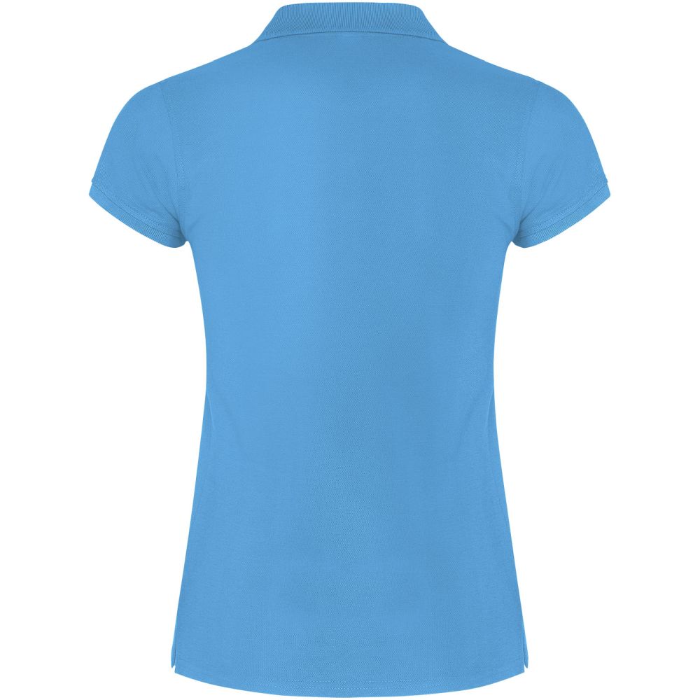 Short-sleeve polo shirt for women. Reinforced covered seams in interior collar. 1x1 ribbed collar and cuffs. Side seams and fitted cut. Narrow 3-button placket. Side slits. Removable label. The model is 179 cm and is wearing size S.