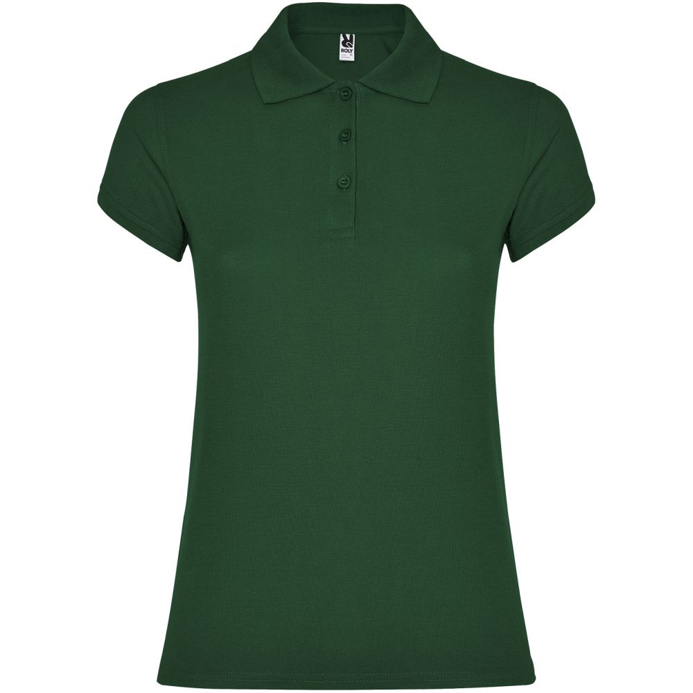 Short-sleeve polo shirt for women. Reinforced covered seams in interior collar. 1x1 ribbed collar and cuffs. Side seams and fitted cut. Narrow 3-button placket. Side slits. Removable label. The model is 179 cm and is wearing size S.