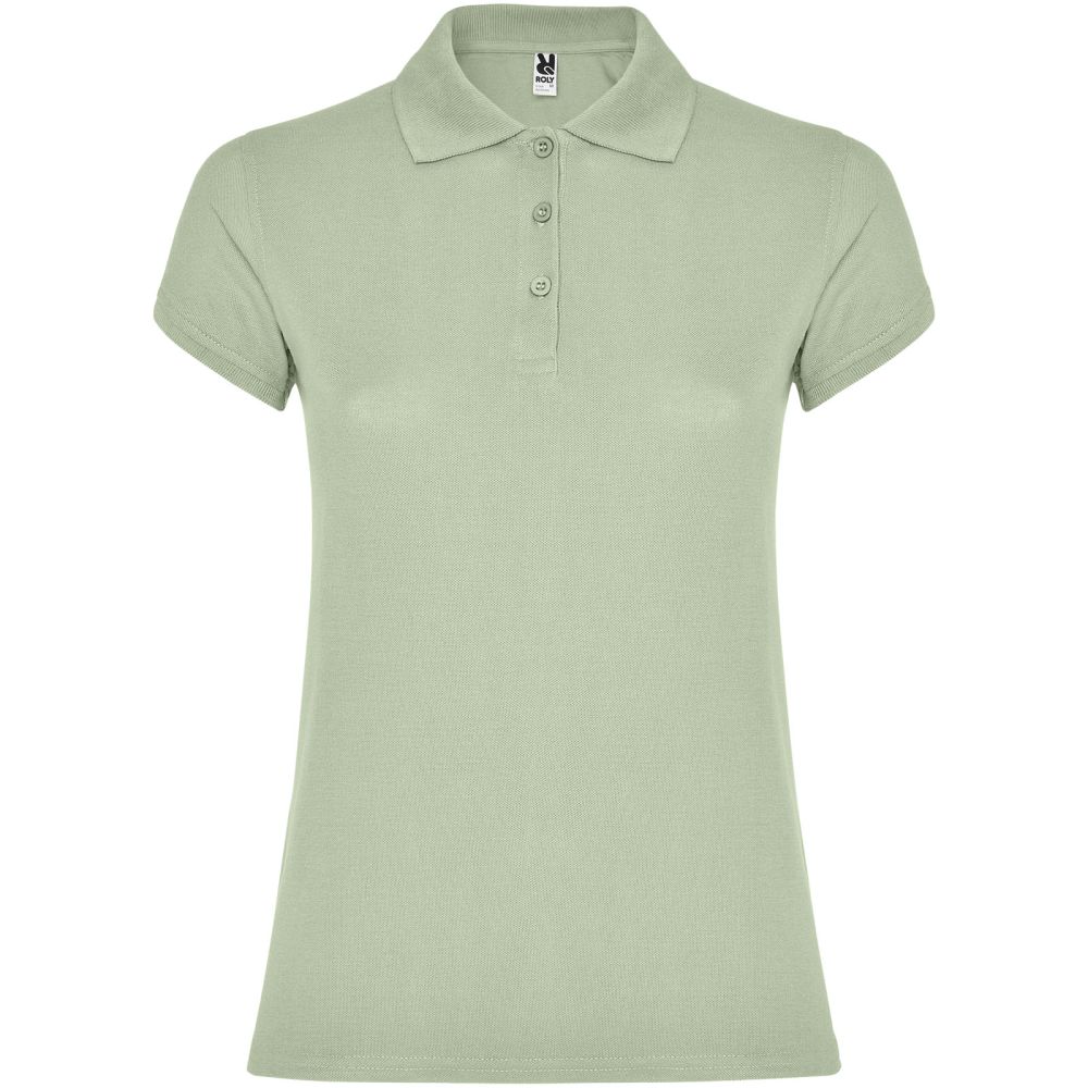 Short-sleeve polo shirt for women. Reinforced covered seams in interior collar. 1x1 ribbed collar and cuffs. Side seams and fitted cut. Narrow 3-button placket. Side slits. Removable label. The model is 179 cm and is wearing size S.