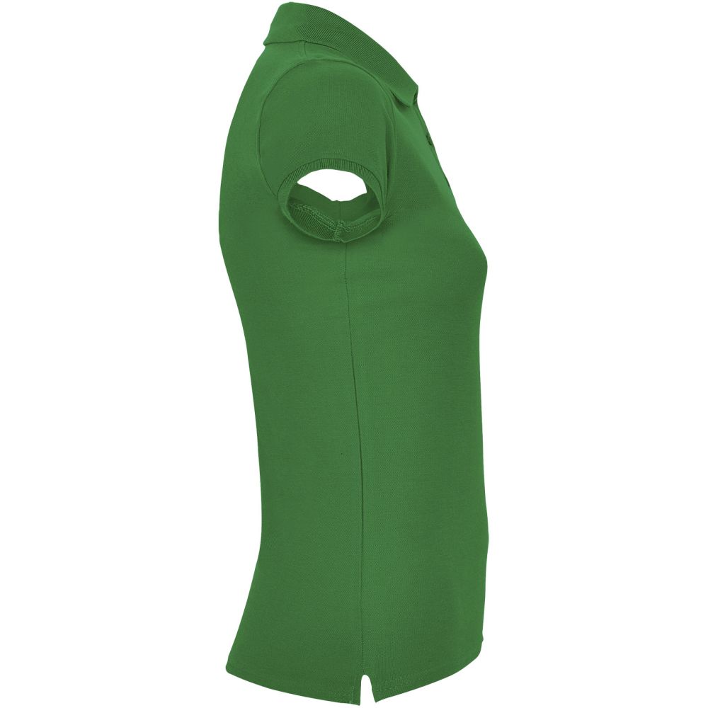 Short-sleeve polo shirt for women. Reinforced covered seams in interior collar. 1x1 ribbed collar and cuffs. Side seams and fitted cut. Narrow 3-button placket. Side slits. Removable label. The model is 179 cm and is wearing size S.