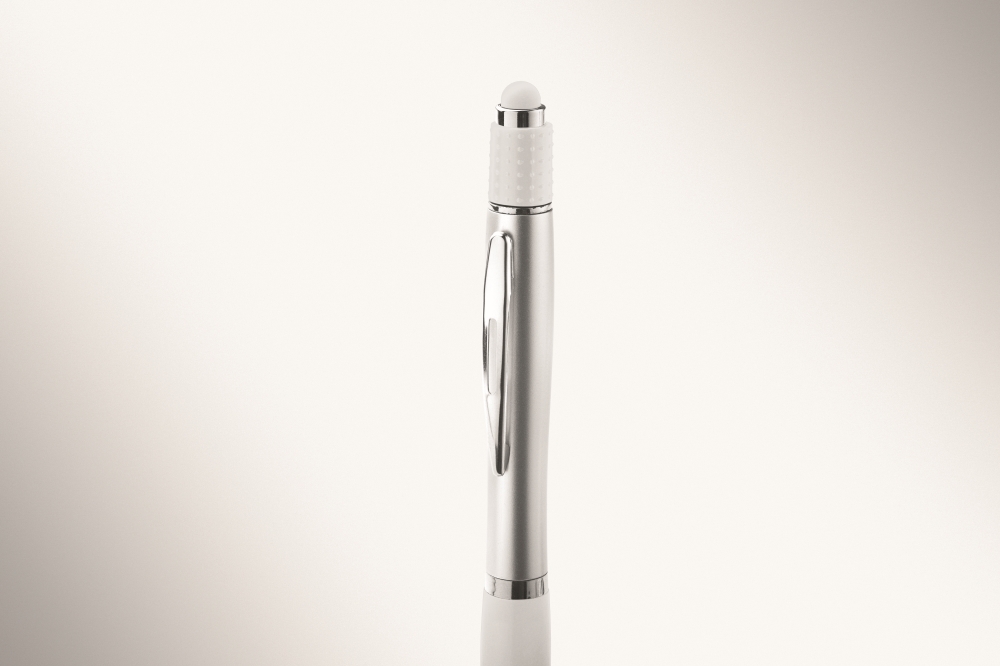 Stylus twist action spinner ball pen in recycled ABS. Blue ink. Dimensions: O 1,3 x 14,6 cm