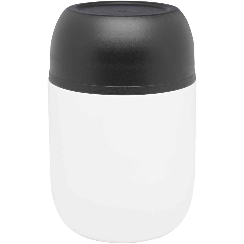 The Supo double-walled lunch pot is made of recycled stainless steel, making it a more sustainable choice compared to plastic and disposable lunch containers. Each lunch pot is packed in a recycled kraft paper box. This item is not suitable for dishwasher or microwave. Capacity: 480 ml. Dimensions: 9,8 x 14,3 x 9,8 x O 9,8 cm