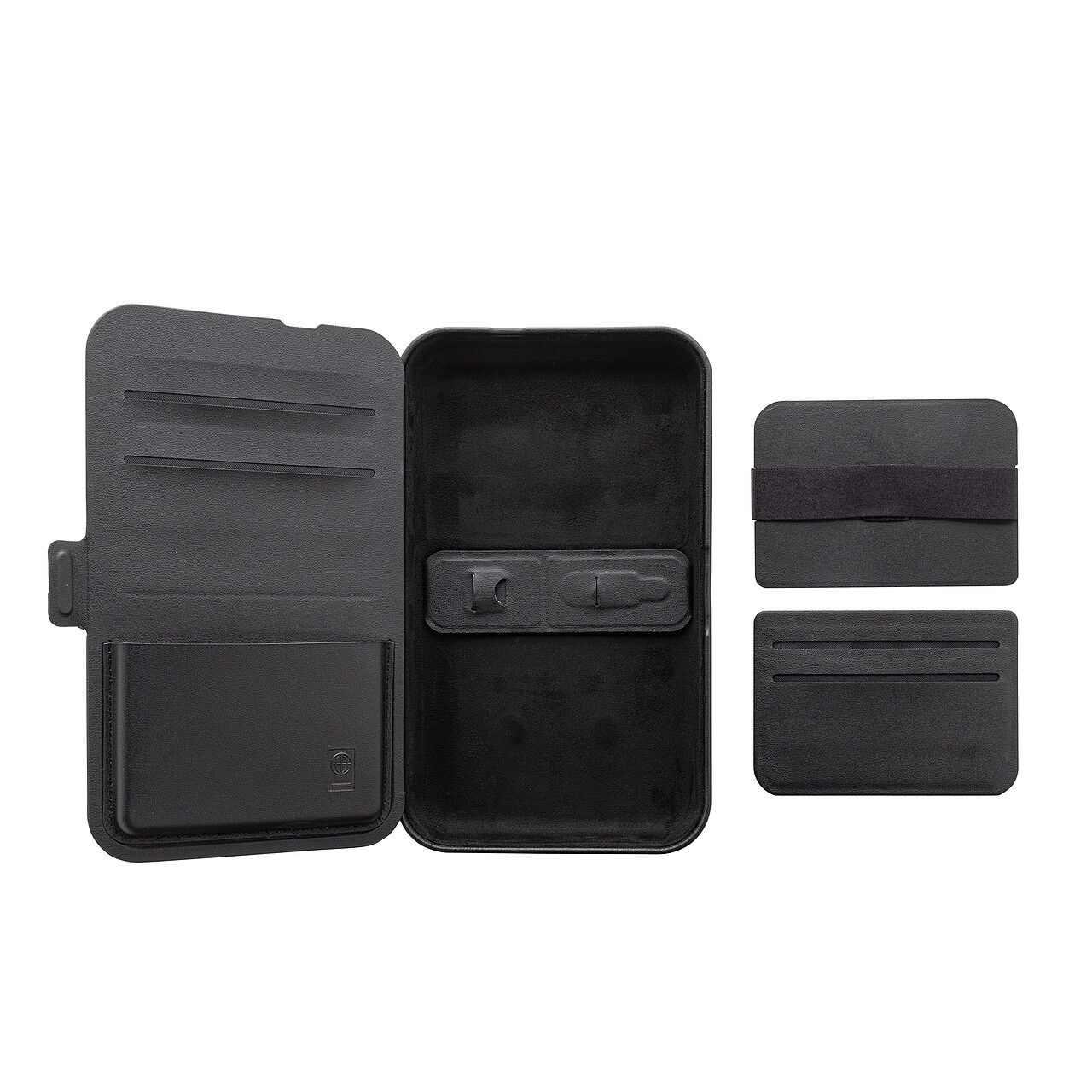 Hard shell travel case with integrated 3-in-1 wireless charger made with RCS recycled PU Total recycled content: 5% based on total item weight. RCS certification ensures a completely certified supply chain of the recycled materials. The travel case has storage space for passport, multiple cards and has an integrated cable holder. The travel case comes equipped with a magnetic 15W wireless charger and an additional 5W wireless charger suitable for earbuds cases or other small wireless chargeable devices and a 2.5W wireless charger for smartwatches ( Apple watches only). Perfect to carry all your valuables and charge all your devices. Inside is also a small magnetic wallet that can be taken out. Including 120 cm TPE cable. Packed in FSC® mix packaging. Item and accessories 100% PVC free. Minimum Input: 9V/3A for optimal use. Output: Phone: 9V/1.1A; 9V/1.67 A/(15W), Earbuds: 5V/1A (5W), Watch: 5V/0.5A.