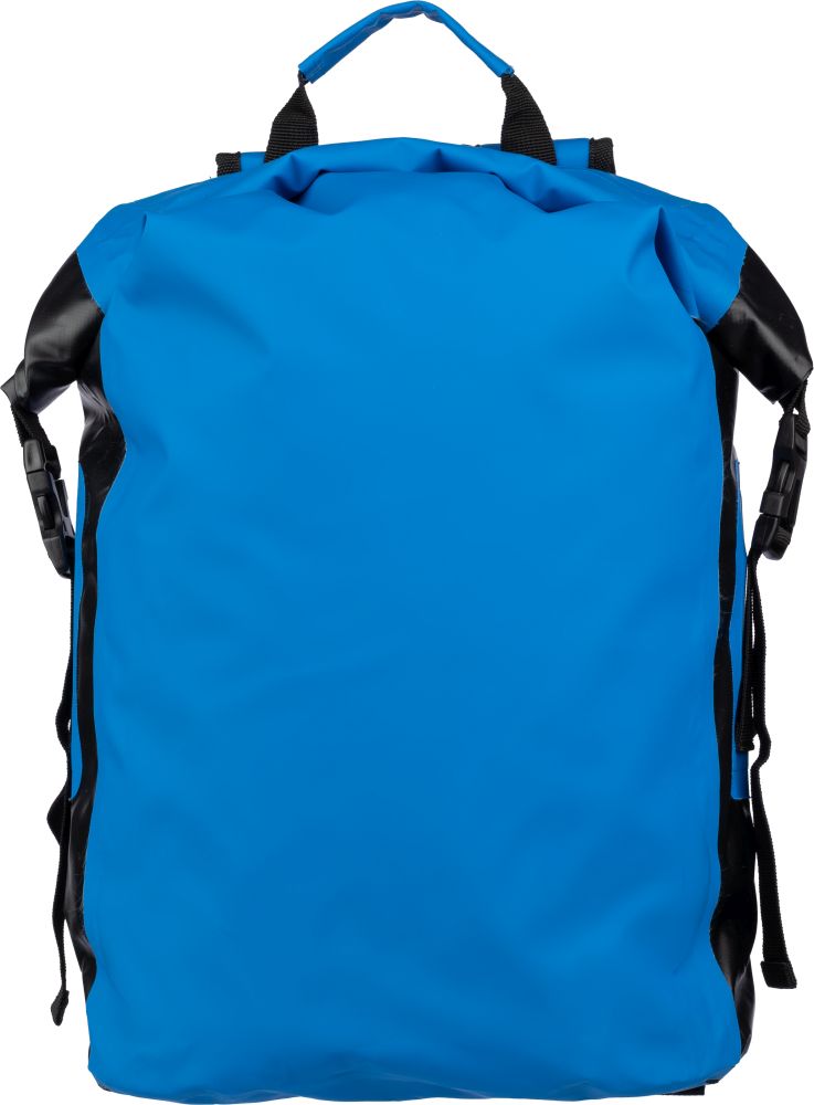 Tarpaulin (250D) waterproof roll-top backpack 25l with a large compartment. It has adjustable reinforced straps and reinforced backing, along with a carrying handle on top and a buckle closure.