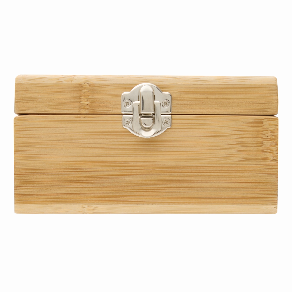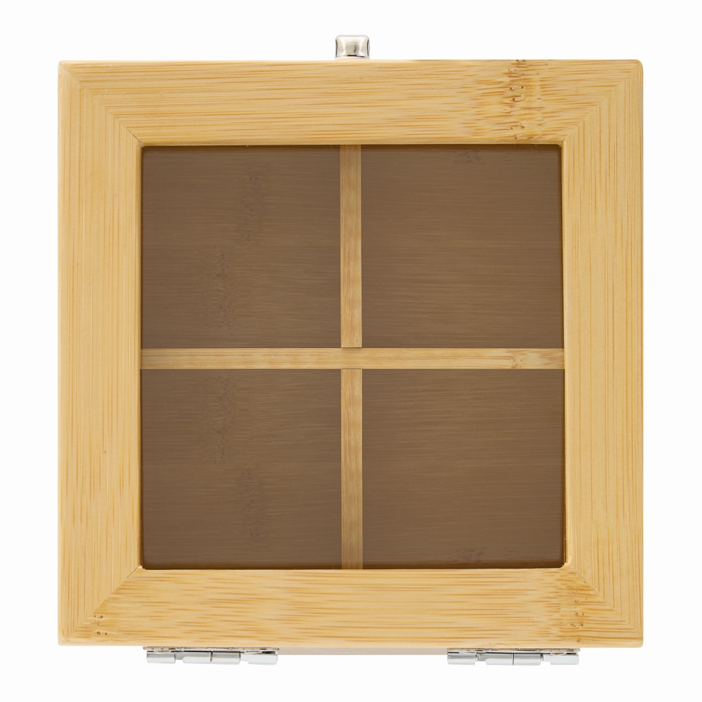 bTea box ASSORTMENT/b: with 4 separate compartments for filling with tea bags, with glass lid and snap lock, made of bamboo. Dimensions: 14 x 14 x 7,5 cm