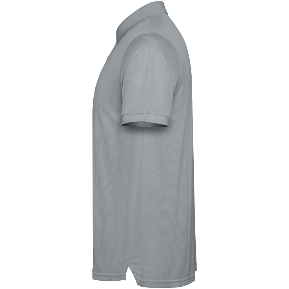 Short-sleeve polo shirt for men. Reinforced covered seams in interior collar. 1x1 ribbed cuffs and collar. Side seams. 3-button placket and side slits.
