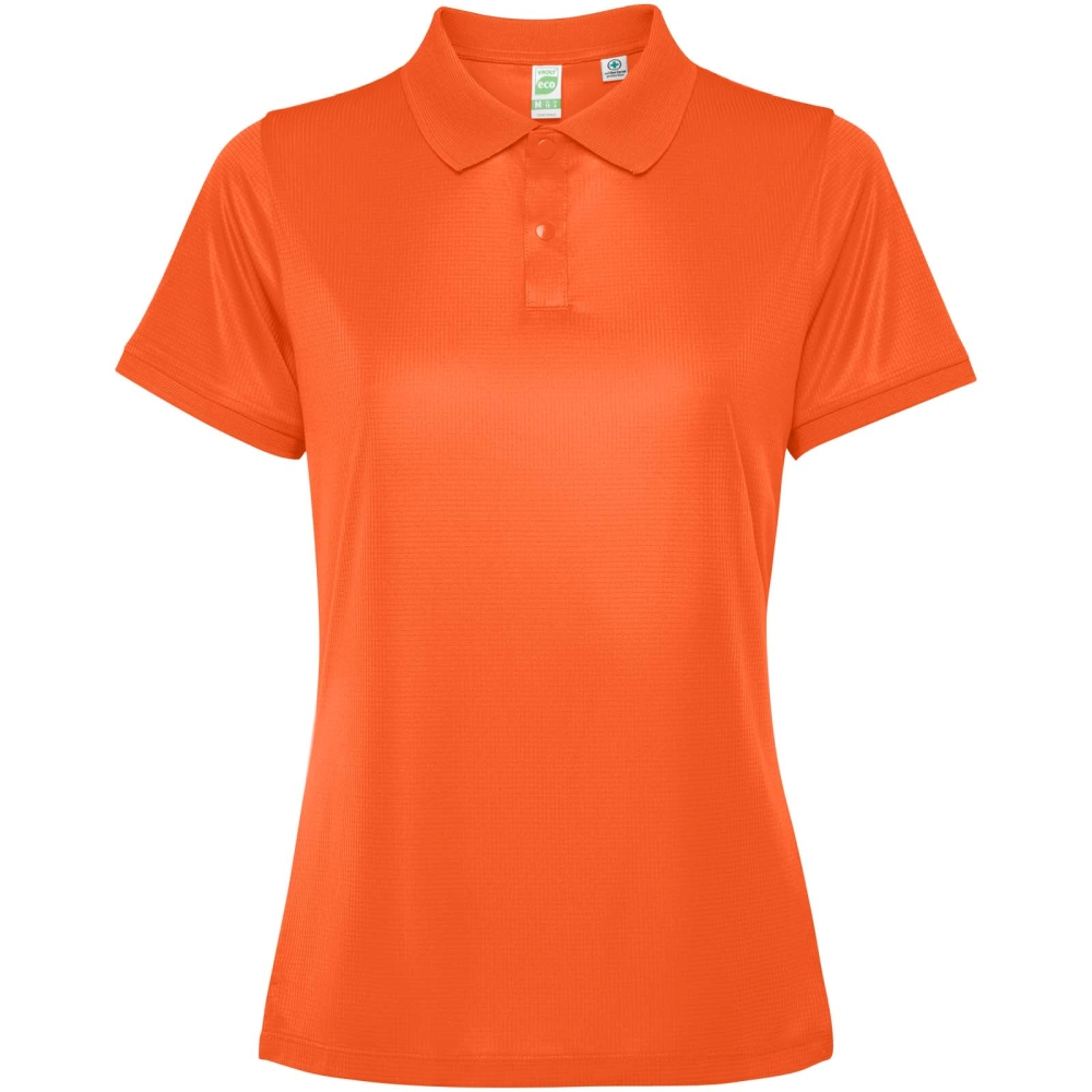 Short-sleeve fitted polo shirt for women. Reinforced covered seams in interior collar. 1x1 ribbed cuffs and collar. Side seams. 3-button placket and side slits.
