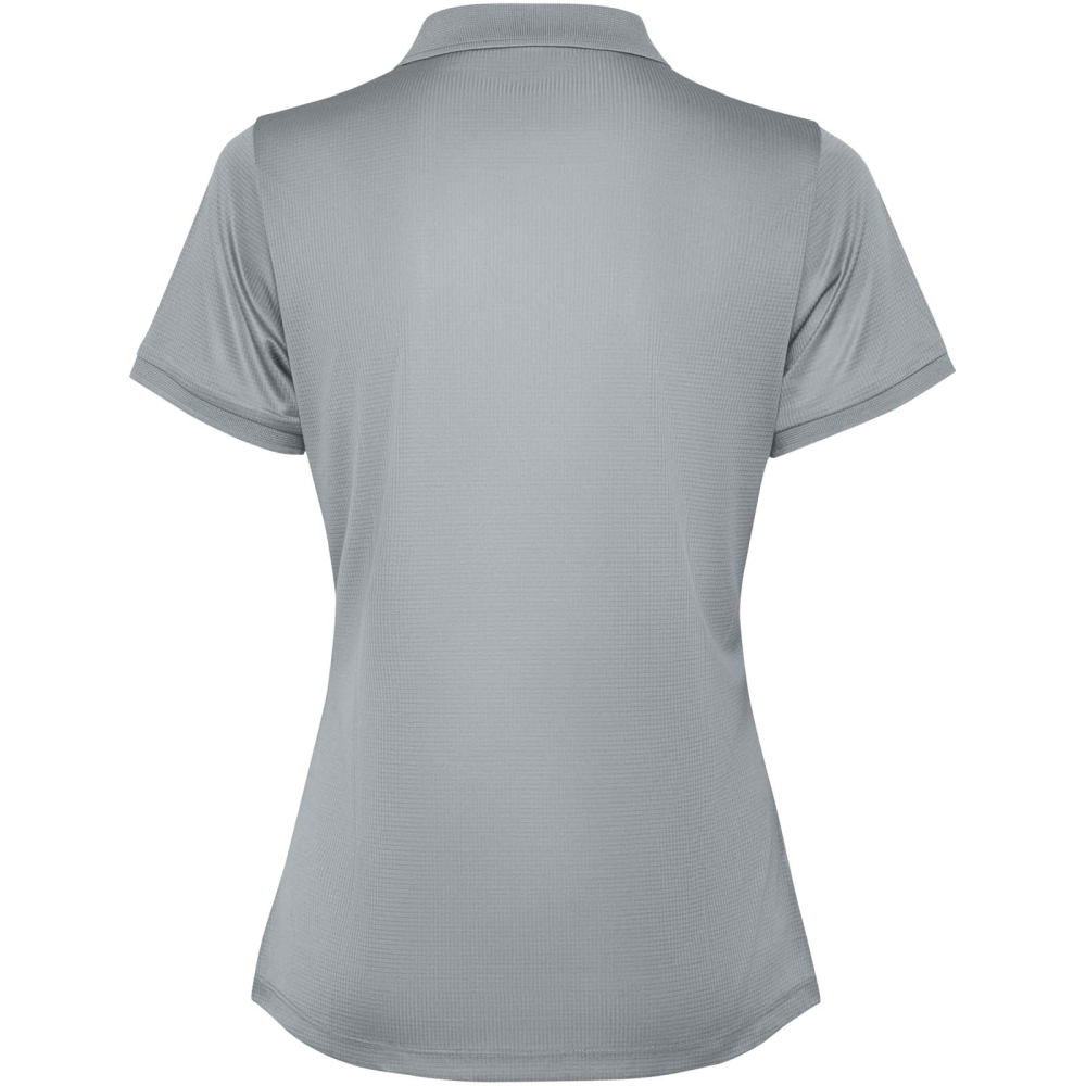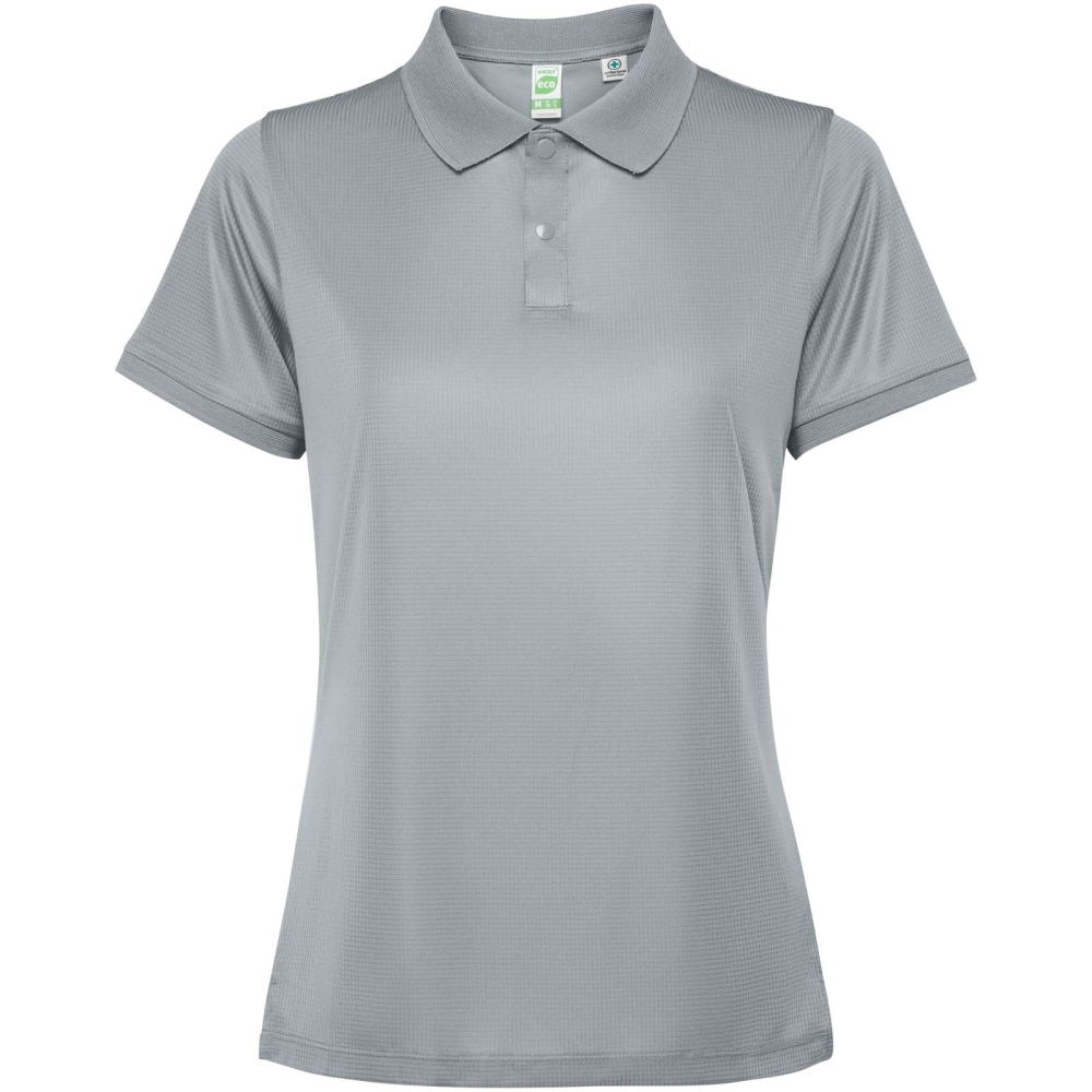 Short-sleeve fitted polo shirt for women. Reinforced covered seams in interior collar. 1x1 ribbed cuffs and collar. Side seams. 3-button placket and side slits.