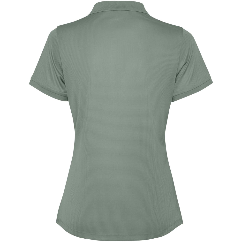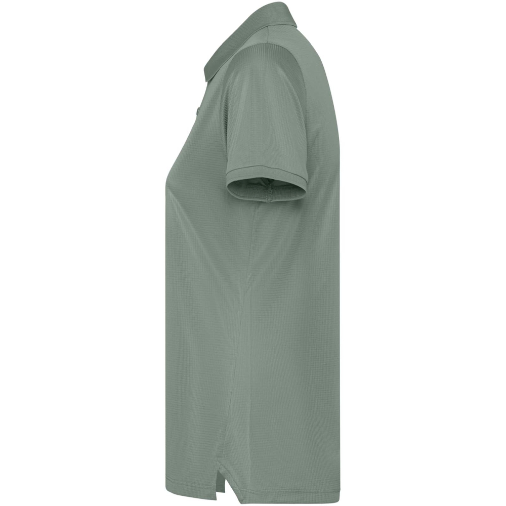 Short-sleeve fitted polo shirt for women. Reinforced covered seams in interior collar. 1x1 ribbed cuffs and collar. Side seams. 3-button placket and side slits.