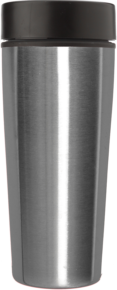 450ml Double walled travel mug with stainless steel body, plastic interior, and push button on the cap, supplied in a white gift box. Product size: 8,1 x 19,7 cm