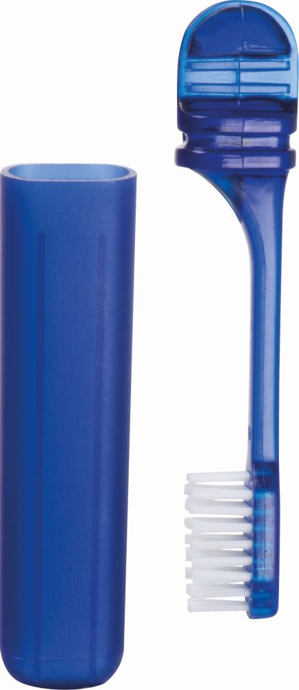 Practical plastic travel toothbrush that clips together. Perfect for travelling and fits anywhere thanks to its small size. Your logo is printed on the outside.