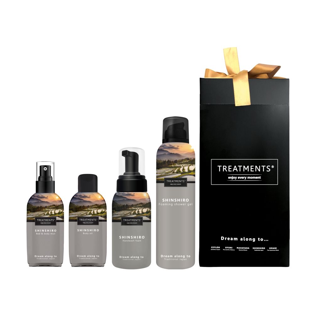 Relax, indulge, and experience the luxury of Treatments®! Treat yourself or someone special with this beautiful Giftbox Medium, ensuring your favorite fragrance subtly lingers all day long. This stunning box contains everything you need for a complete pampering experience: a refreshing Shinshiro Foaming Shower Gel, a gentle and cleansing Hand Wash Foam, a revitalizing Bed & Body Mist, and nourishing and soothing Body Oil. The perfect gift for any occasion, offering a wonderful moment of indulgence and tranquility! Dimensions: 14 x 14 x 28 cm