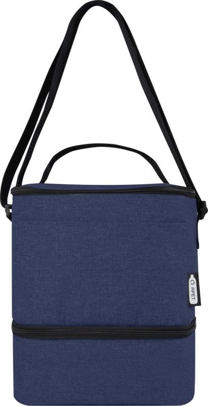 The Tundra recycled lunch cooler bag provides ample storage for all your lunch time goodies. Featuring a top insulated zippered compartment, and a bottom insulated zippered compartment. The bottom compartment is perfect for your bento box, and the front slash pocket is ideal for storing other small items. The cooler PEVA lining and exterior is made from GRS certified recycled PET plastic.