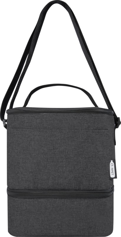 The Tundra recycled lunch cooler bag provides ample storage for all your lunch time goodies. Featuring a top insulated zippered compartment, and a bottom insulated zippered compartment. The bottom compartment is perfect for your bento box, and the front slash pocket is ideal for storing other small items. The cooler PEVA lining and exterior is made from GRS certified recycled PET plastic.