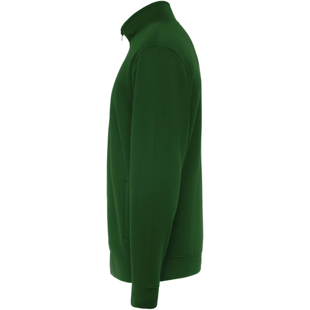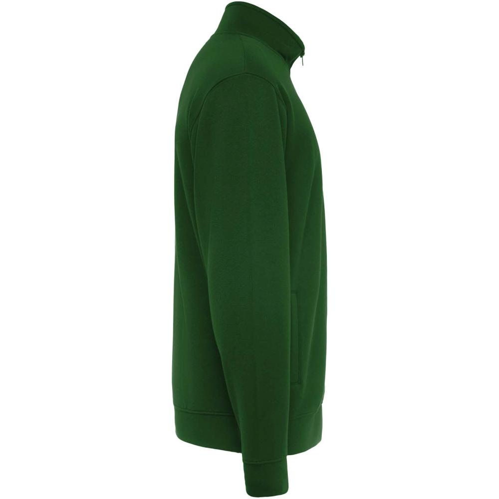 High collar sweater with matching zip. Matching inner collar with reinforced covered seams. 1x1 ribbed fabric in cuffs and waist. Removable label. The male model is 185 cm and is wearing size L, and the female model is 168 cm and is wearing size S.