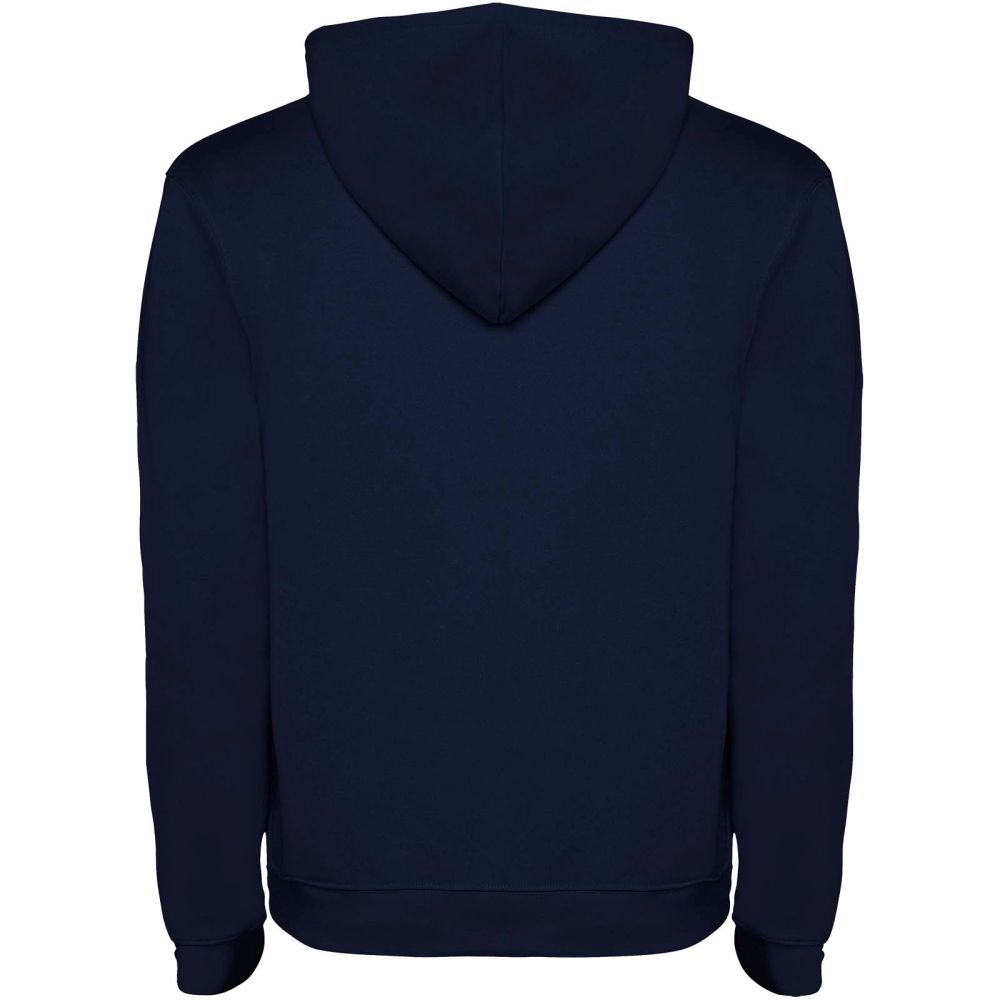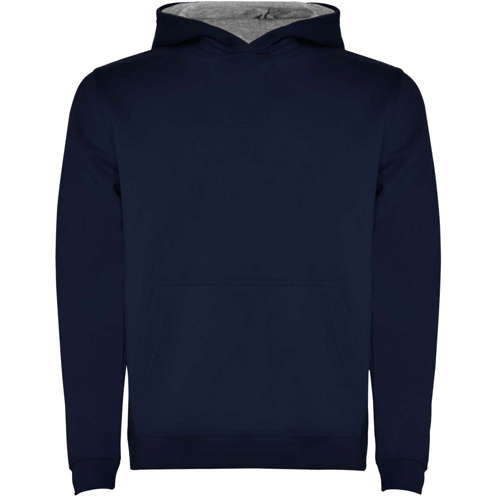 Two-colour hoodie with double fabric, contrasting adjustable drawcord, reinforced covered seams in collar and kangaroo style pocket. 1x1 elastane rib in cuffs and waistband. Removable label. The model is 185 cm and is wearing size M.