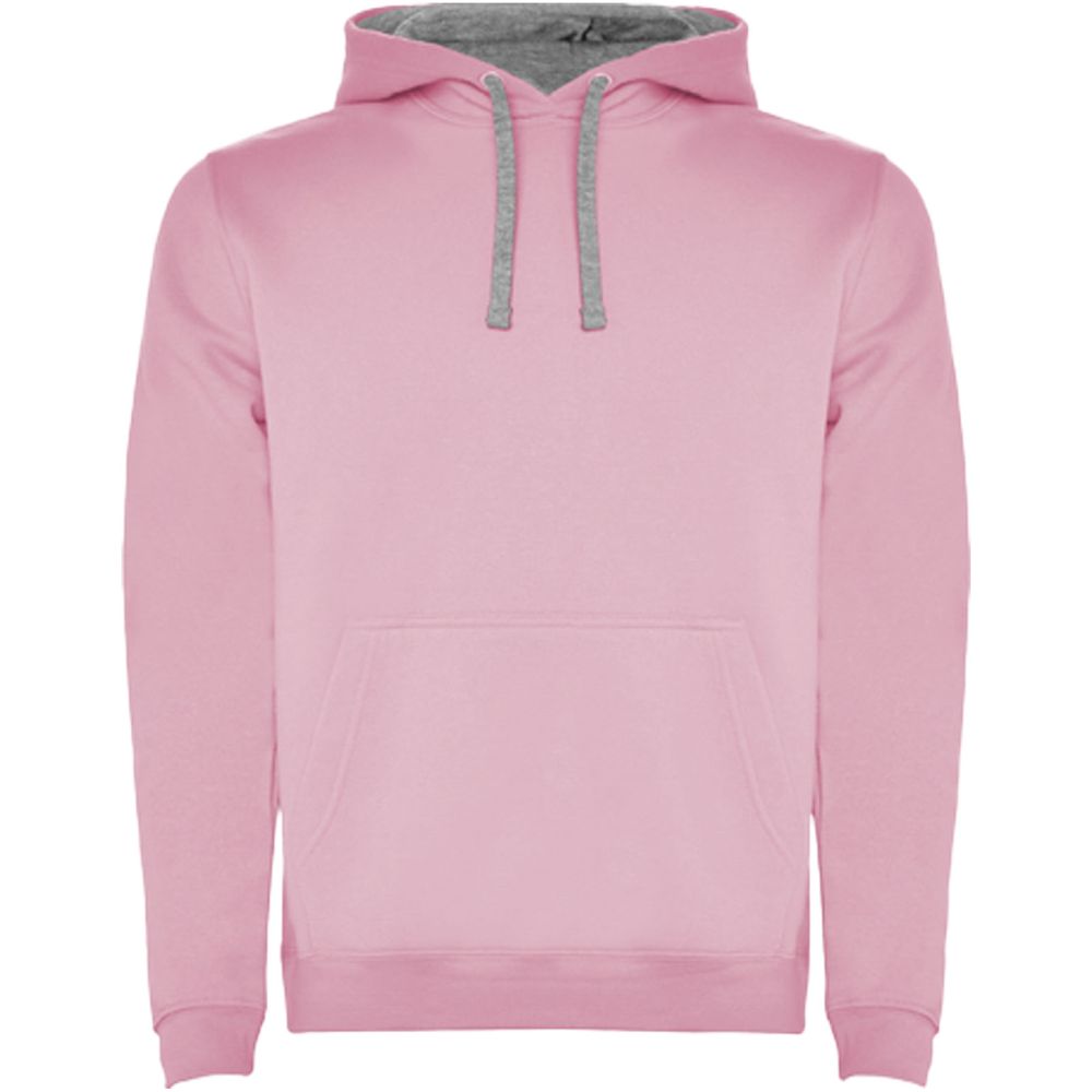 Two-colour hoodie with double fabric, contrasting adjustable drawcord, reinforced covered seams in collar and kangaroo style pocket. 1x1 elastane rib in cuffs and waistband. Removable label. The model is 185 cm and is wearing size M.