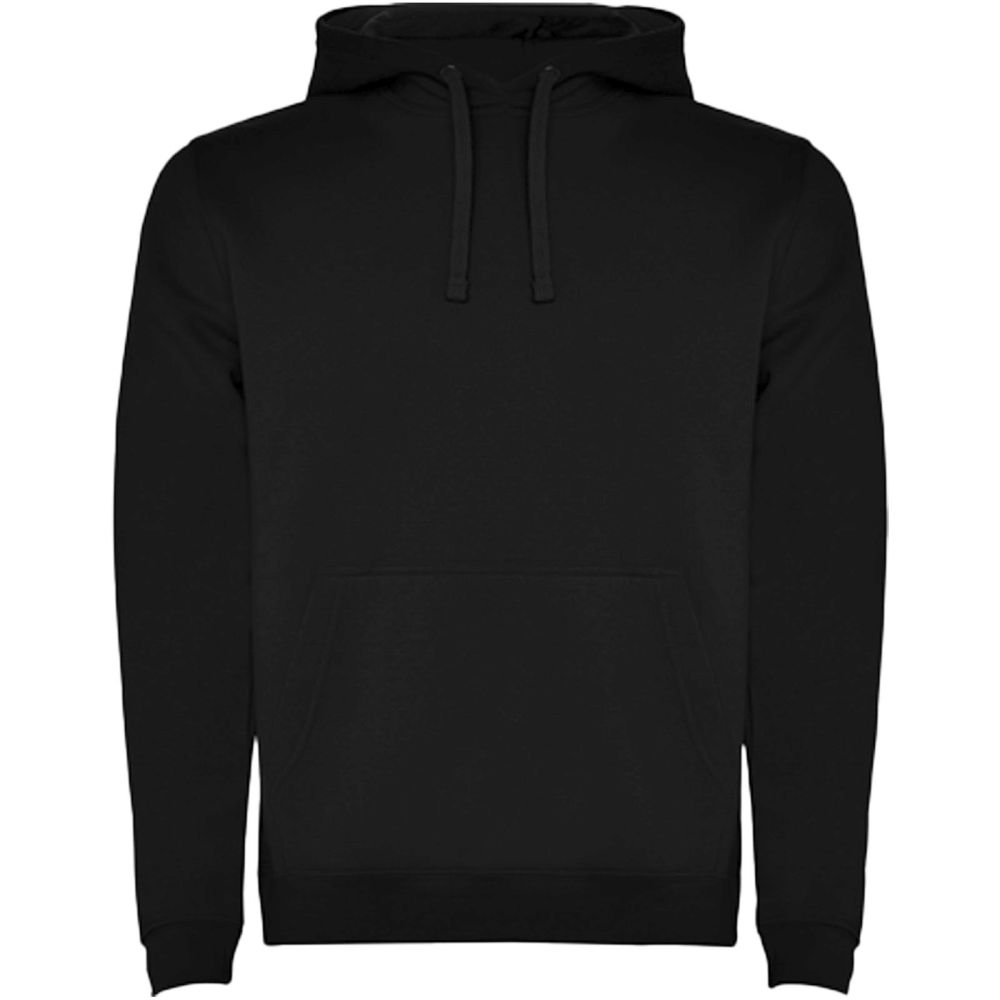 Two-colour hoodie with double fabric, contrasting adjustable drawcord, reinforced covered seams in collar and kangaroo style pocket. 1x1 elastane rib in cuffs and waistband. Removable label. The model is 185 cm and is wearing size M.