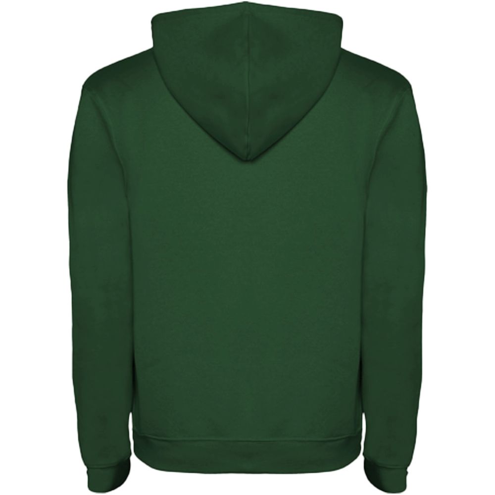 Two-colour hoodie with double fabric, contrasting adjustable drawcord, reinforced covered seams in collar and kangaroo style pocket. 1x1 elastane rib in cuffs and waistband. Removable label. The model is 185 cm and is wearing size M.