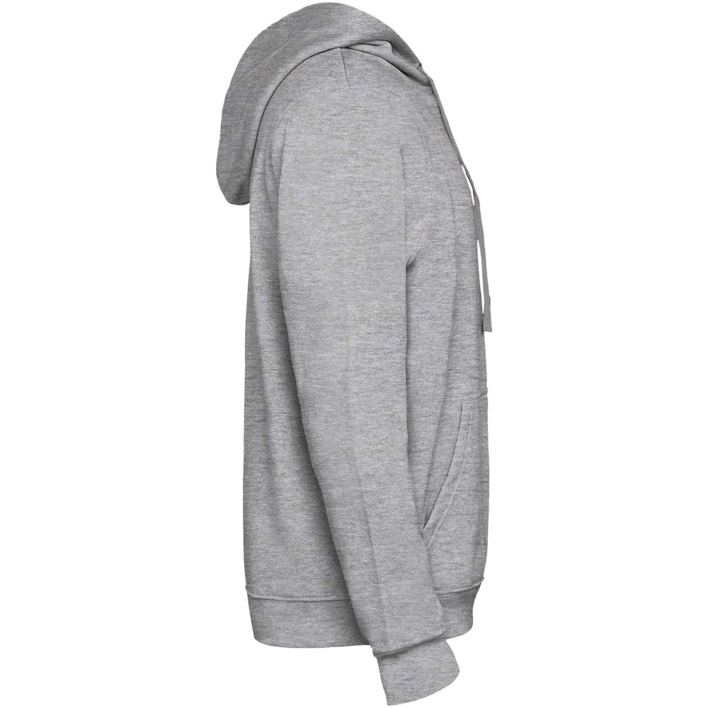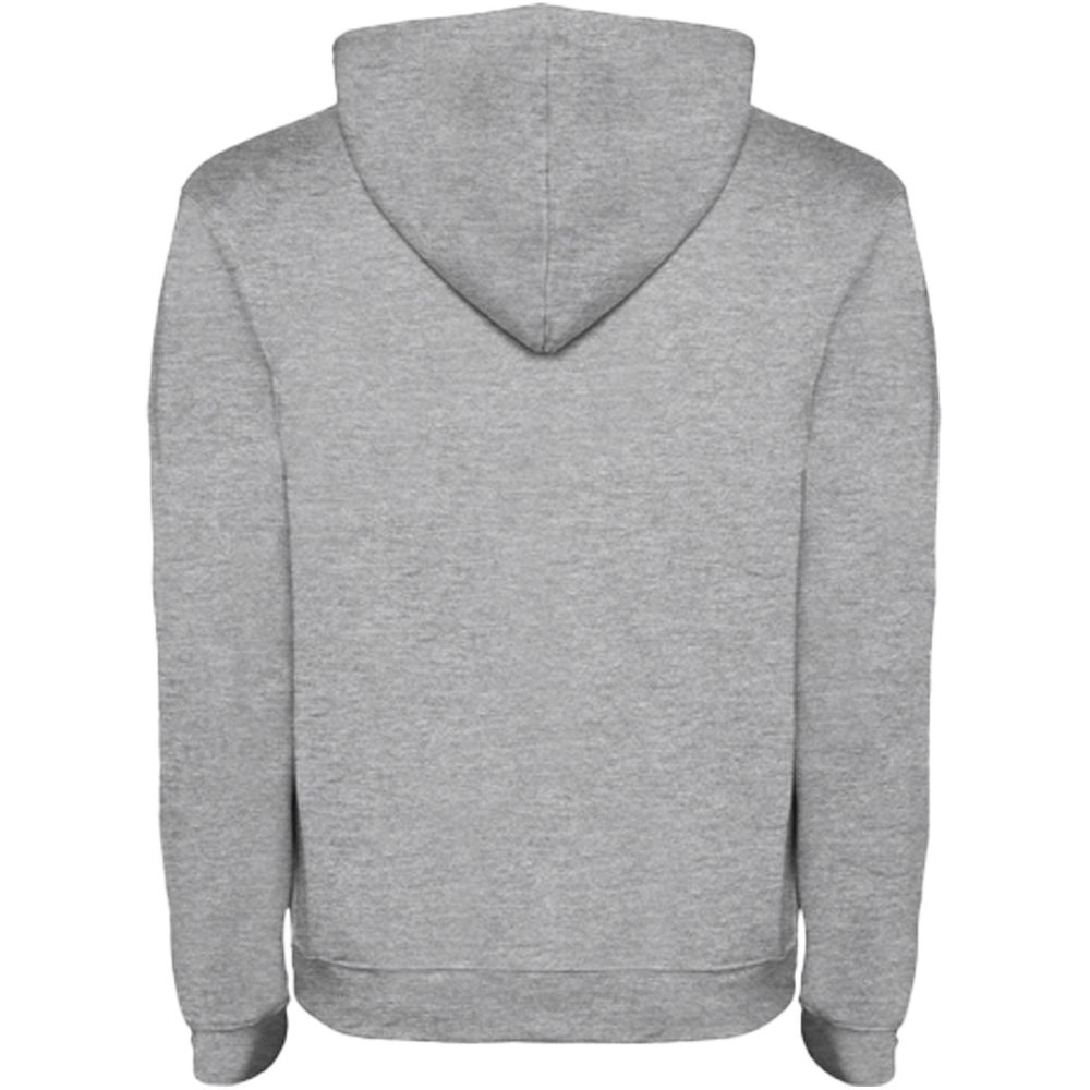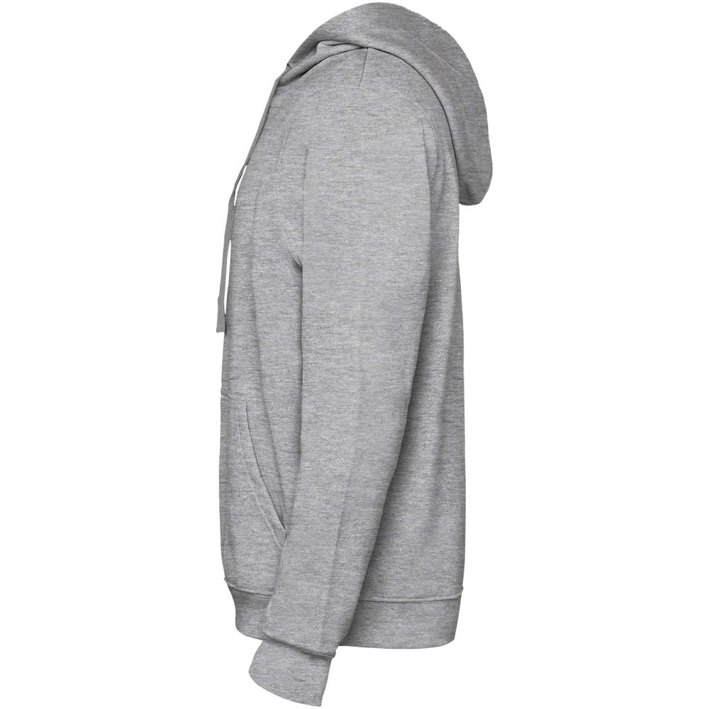 Two-colour hoodie with double fabric, contrasting adjustable drawcord, reinforced covered seams in collar and kangaroo style pocket. 1x1 elastane rib in cuffs and waistband. Removable label. The model is 185 cm and is wearing size M.