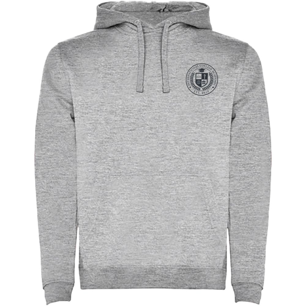 Two-colour hoodie with double fabric, contrasting adjustable drawcord, reinforced covered seams in collar and kangaroo style pocket. 1x1 elastane rib in cuffs and waistband. Removable label. The model is 185 cm and is wearing size M.