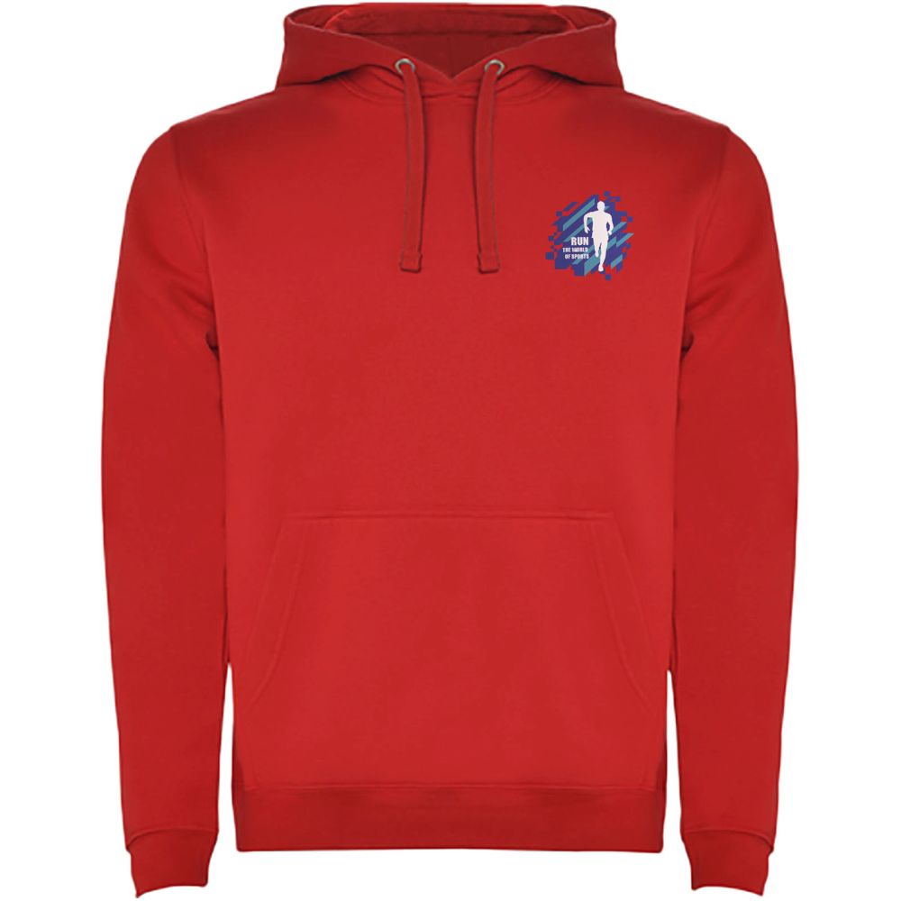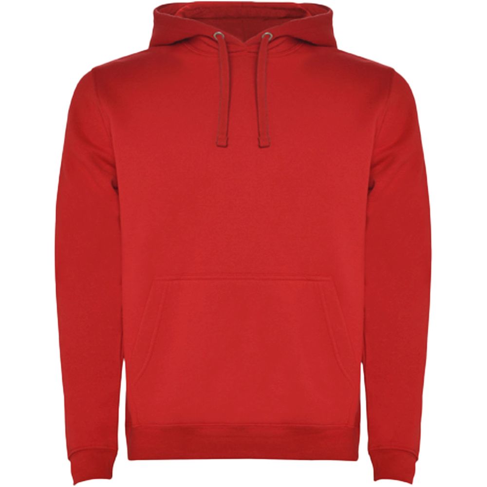 Two-colour hoodie with double fabric, contrasting adjustable drawcord, reinforced covered seams in collar and kangaroo style pocket. 1x1 elastane rib in cuffs and waistband. Removable label. The model is 185 cm and is wearing size M.