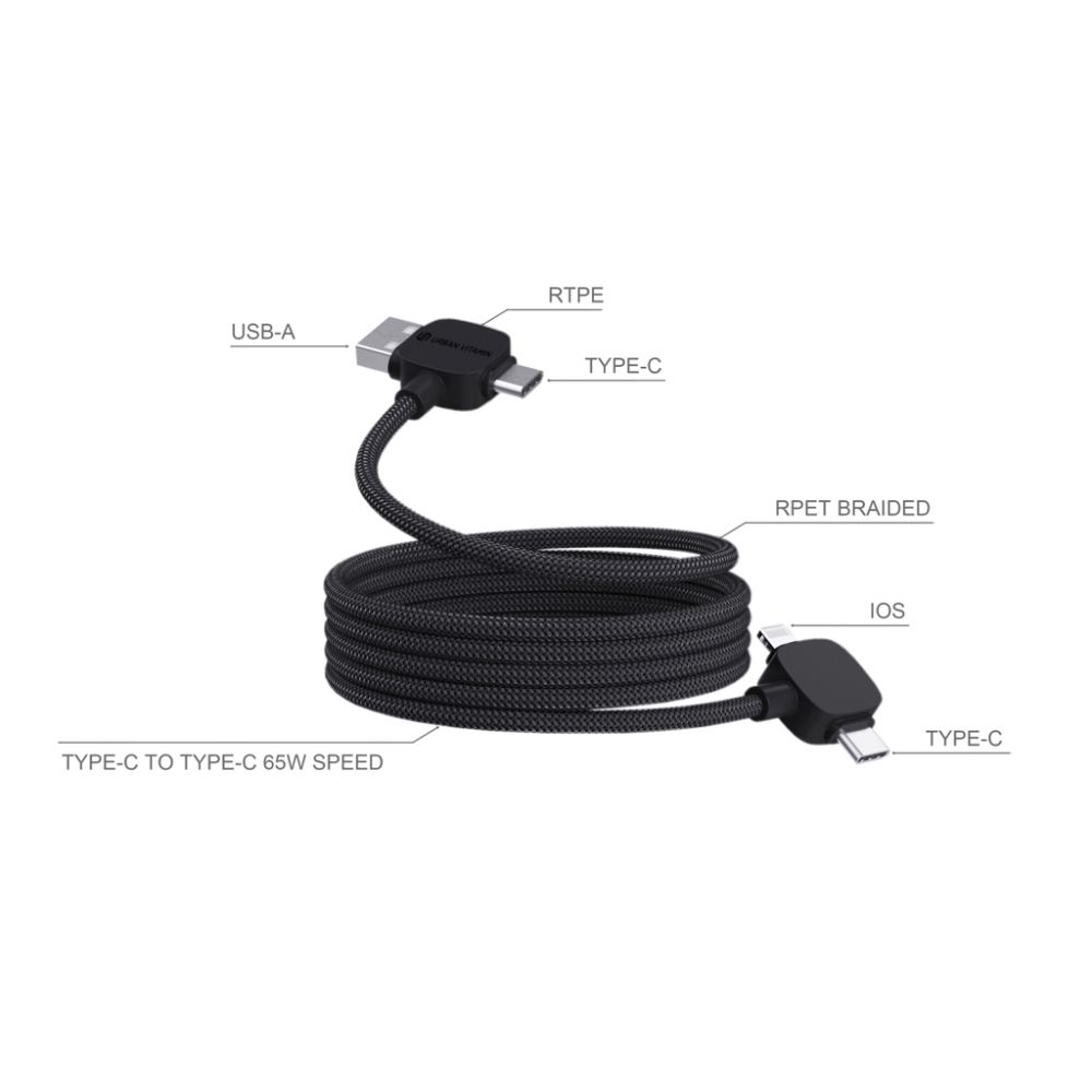 Urban Vitamin Stockton 65W RCS RTPE/RPET magnetic cable, black