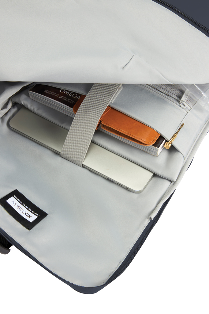 Experience versatile, all weather design and enhanced security with Urban backpack. Its unique L shaped wide opening main compartment,complete with an expandable section and ample space for a 16 inch laptop, offers effortless access to your essentials. The anti theft design, coupledwith a self locking metal zipper puller, ensures that your belongings remain safe. The addition of a rear pocket and a dedicated water bottle pocketbrings convenience to your daily adventures, making it the ideal companion for urban explorer. This backpack is not only water repellent, its durable and stylish. Crafted with Aware ™traceable recycled polyester and finished with a soft touch PU coating, perfect for any occasion. 17% recycledcontent. Registered design®