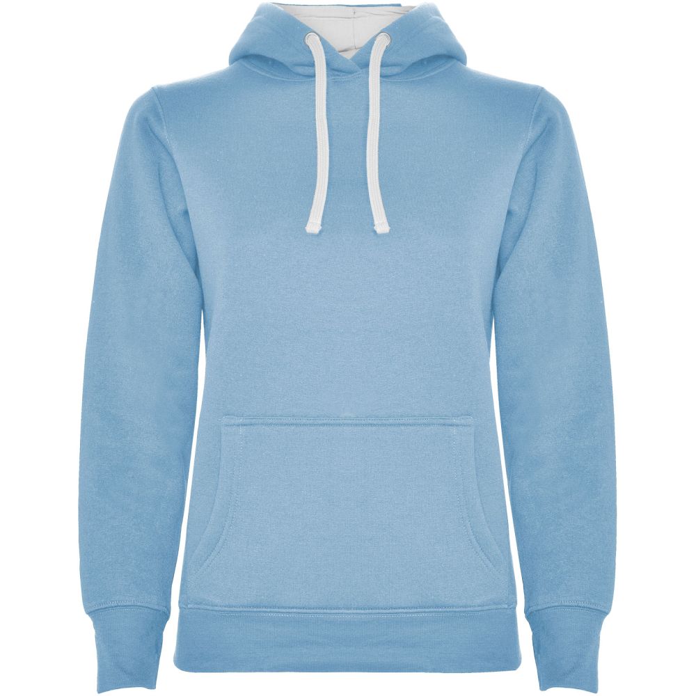 Two-colour hoodie with double fabric, contrasting adjustable drawcord, reinforced covered seams in collar and kangaroo style pocket. 1x1 elastane rib in cuffs and waistband. Removable label. The model is 185 cm and is wearing size M.