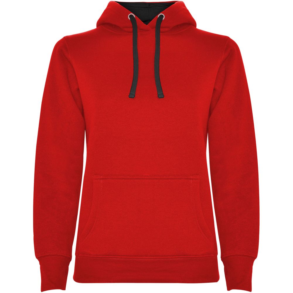 Two-colour hoodie with double fabric, contrasting adjustable drawcord, reinforced covered seams in collar and kangaroo style pocket. 1x1 elastane rib in cuffs and waistband. Removable label. The model is 185 cm and is wearing size M.