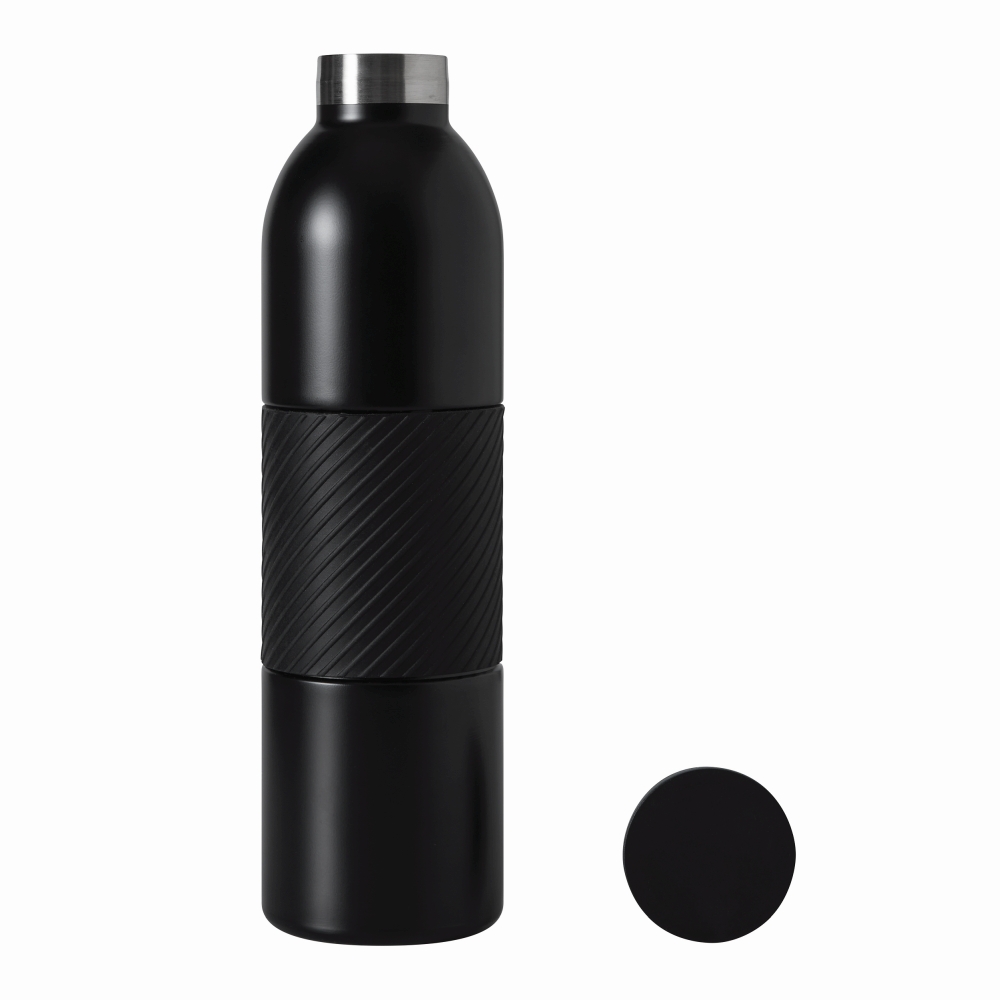 Vacuum-insulated bottle, double-walled: stainless steel inside and outside, color-coordinated plastic cap with secure screw cap and silicone sleeve for optimal grip, capacity approx. 600 ml, keeps heat approx. 8 hours and cold up to 12 hours. Dimensions: O7 x 26.5 cm