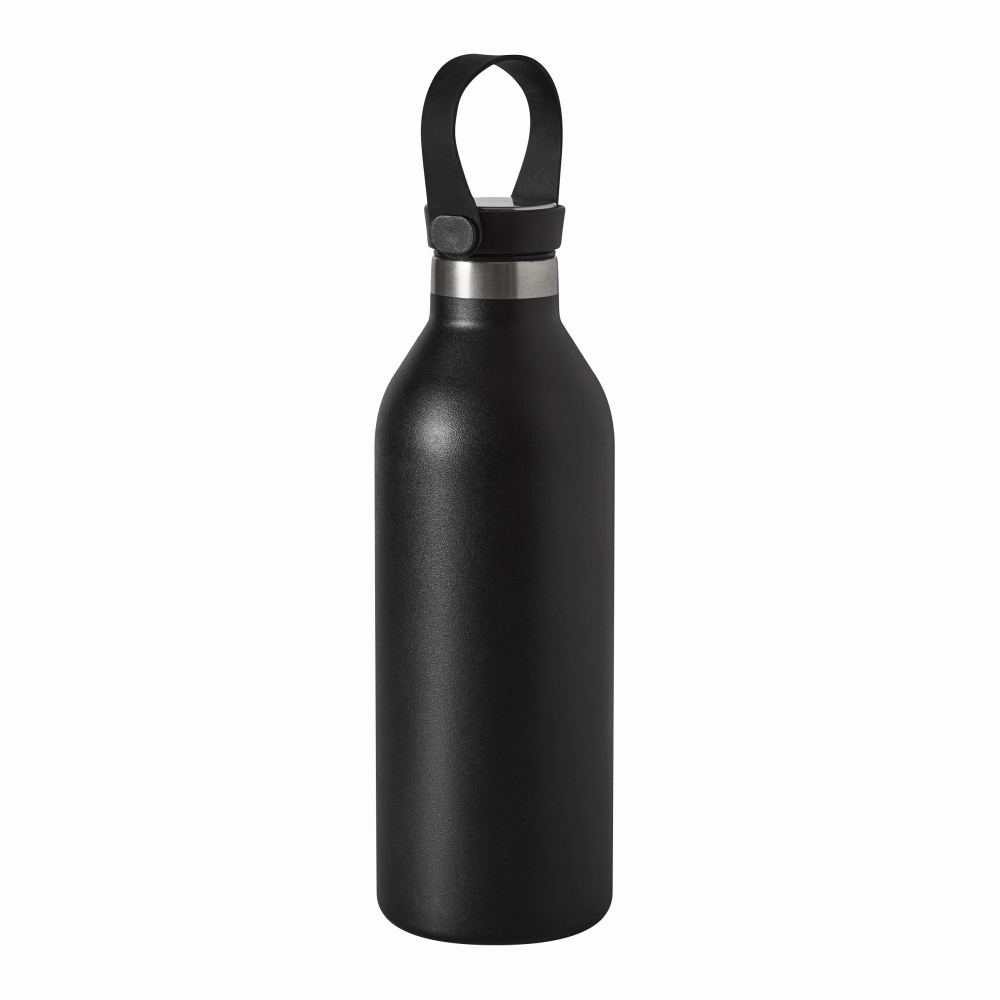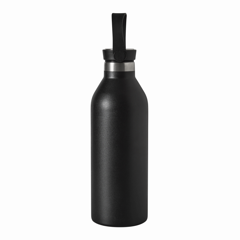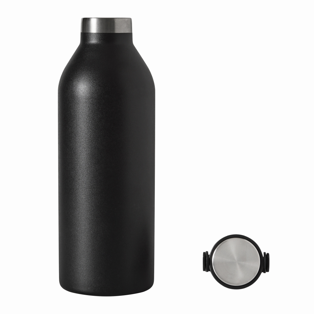 Vacuum-insulated bottle, double-walled: stainless steel inside and outside, color-coordinated plastic cap with secure screw cap and silicone sleeve for optimal grip, capacity approx. 600 ml, keeps heat approx. 8 hours and cold up to 12 hours. Dimensions: O7 x 26.5 cm