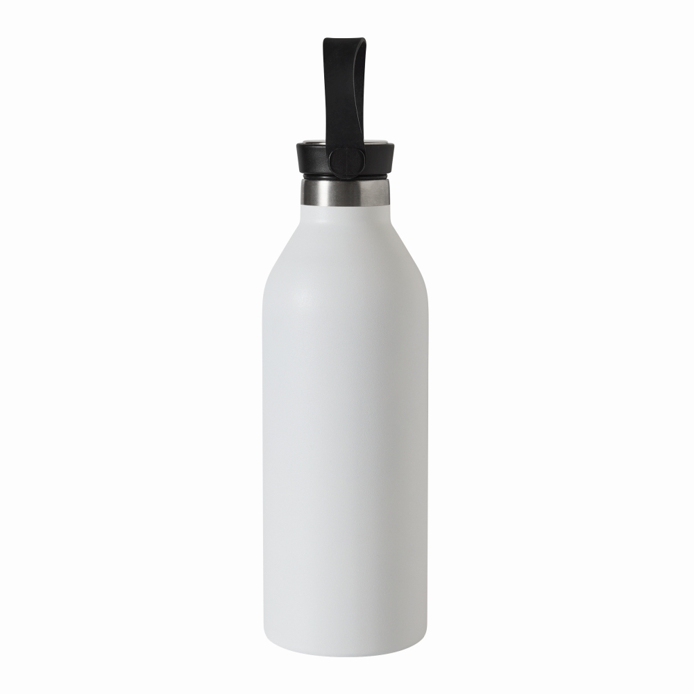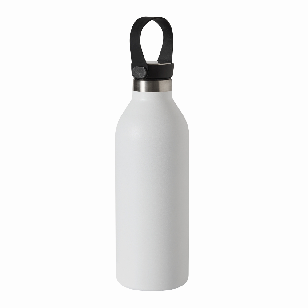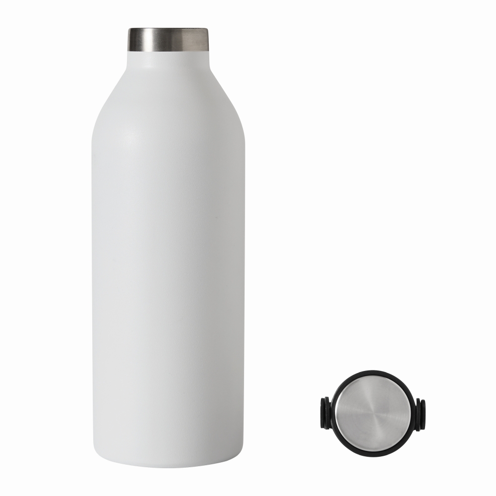 Vacuum-insulated bottle, double-walled: stainless steel inside and outside, color-coordinated plastic cap with secure screw cap and silicone sleeve for optimal grip, capacity approx. 600 ml, keeps heat approx. 8 hours and cold up to 12 hours. Dimensions: O7 x 26.5 cm