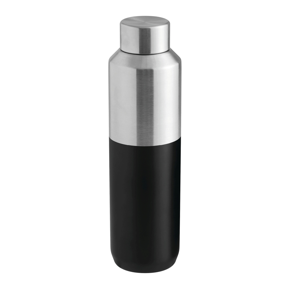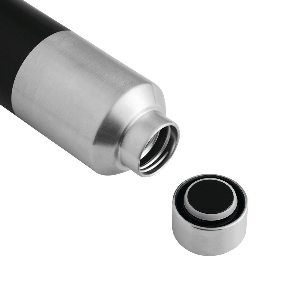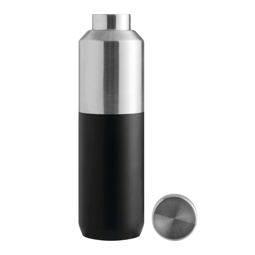 Vacuum drinking bottle, double-walled: inside made of recycled stainless steel, outside made of stainless steel, lid with secure screw cap and silicone sealing ring, capacity approx. 600 ml, keeps warm for approx. 8 hours and cold for up to 12 hours, in a box. Dimensions: O7 x 24,5 cm