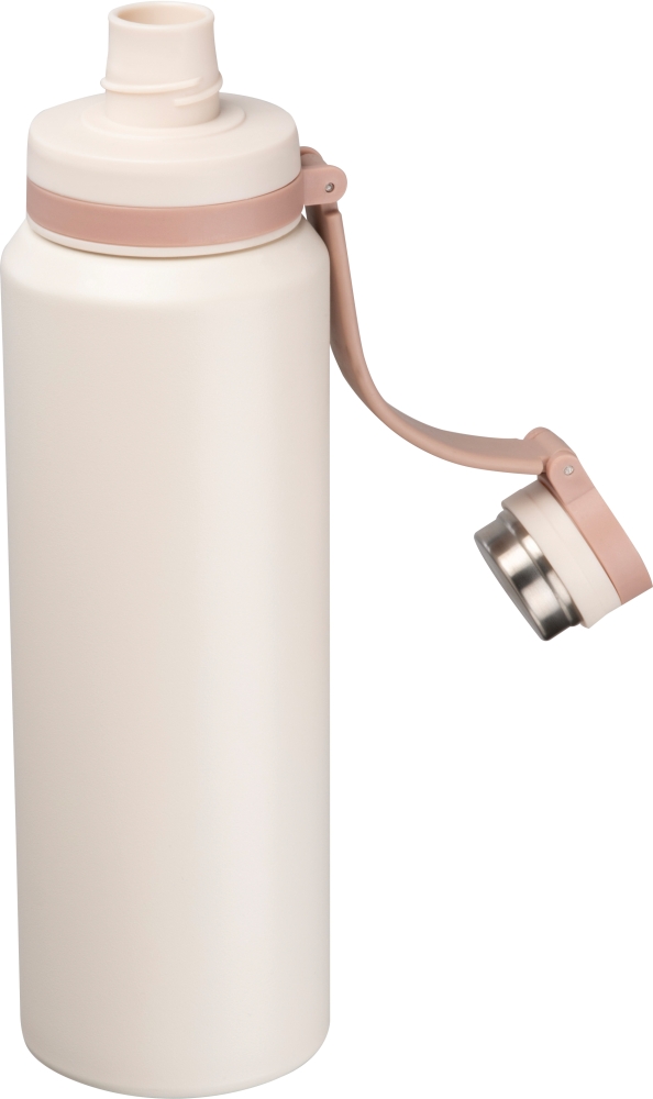Double-walled vacuum stainless steel drinking bottle with a capacity of 800ml. Leak-proof screw cap with integrated carrying strap. We will engrave your logo on the bottle. Dimensions: o 7,5 x 26,5 cm