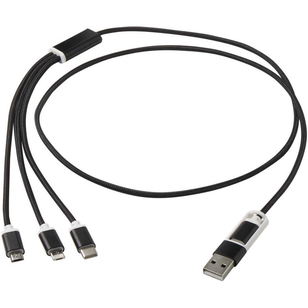Versatile 5-1 recycled aluminium charging cable, solid black