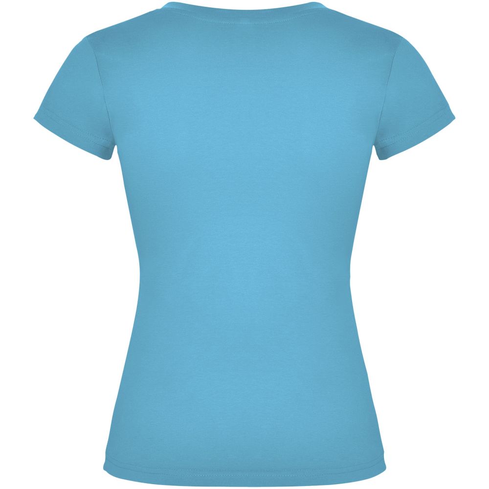 V-neck short-sleeve t-shirt for women with 1x1 ribbed finishes. Slim-fit with side seams. Removable label. The model is 174 cm and is wearing size S.